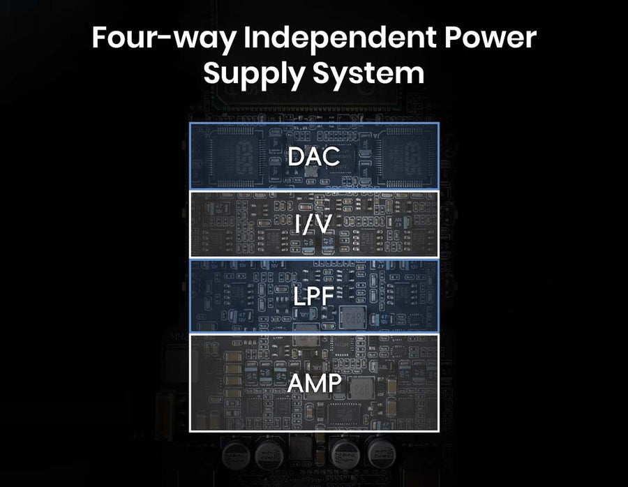 FOUR-WAY INDEPENDENT POWER SUPPLY FOR CLEAN & HIGH-QUALITY AUDIO