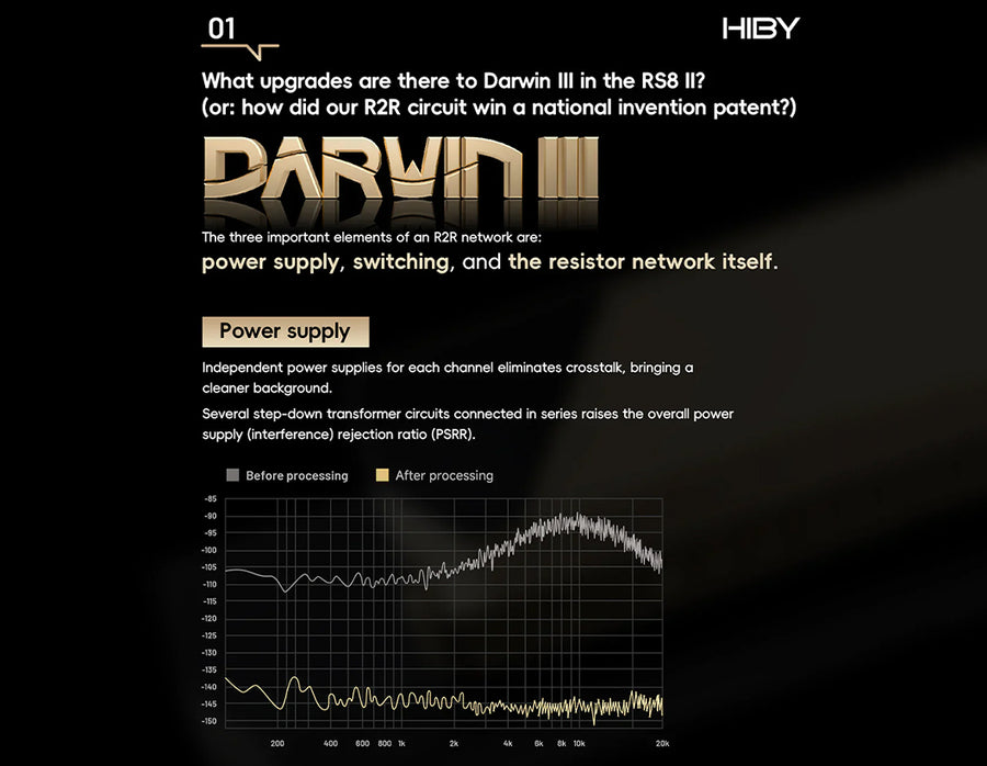 The HiBy RS8II is a flagship Digital Audio Player redefining portable Hi-Fi with groundbreaking technology and design. It features the proprietary DARWIN III DAC architecture which is an advanced R2R-based platform. It integrates a high-capacity FPGA with 212 DSP units offering ultra-low distortion of just 0.0008%, FIR filters, Harmonic control, and NOS/OS switching for precise & flexible sound reproduction. Powered by the Qualcomm Dragonwing QCS8550 processor (based on Snapdragon 8 Gen 2 platform) with 16GB RAM and 512GB storage, it ensures seamless multitasking and a smooth Android 13-based HibyOS experience. The AdaptiveAMP circuitry offers 64-level adjustable Class A/AB amplification for optimal sound and power efficiency.