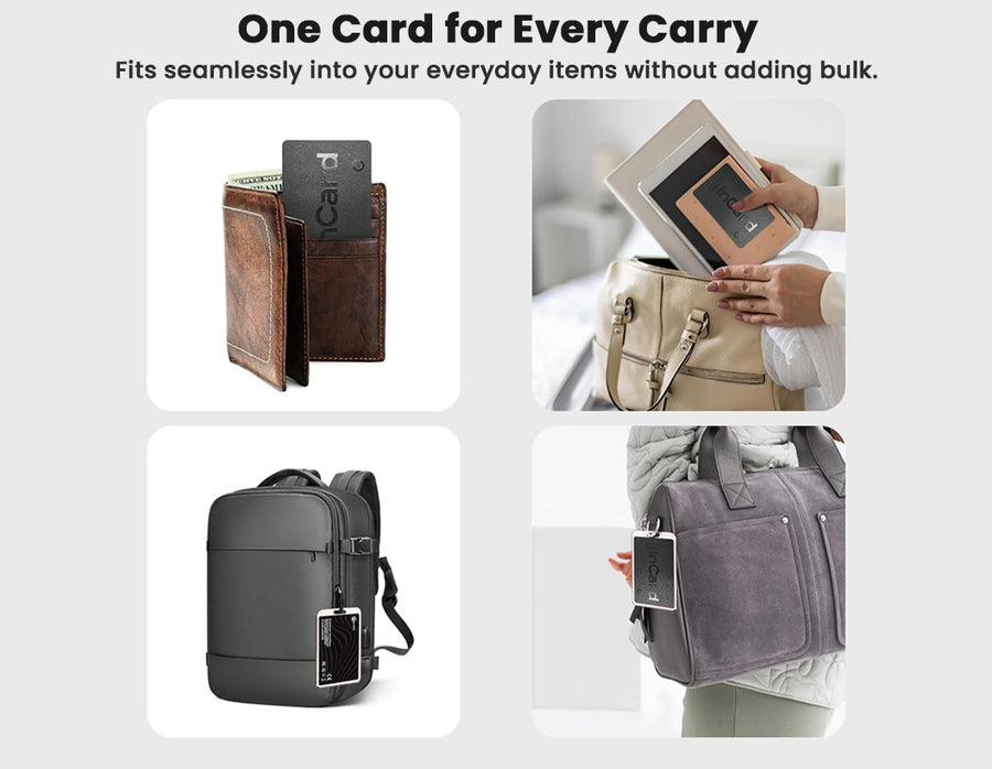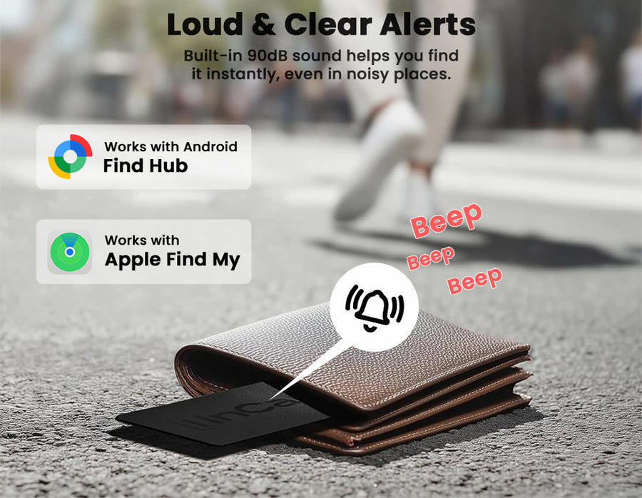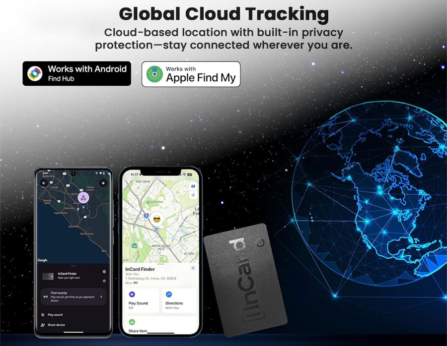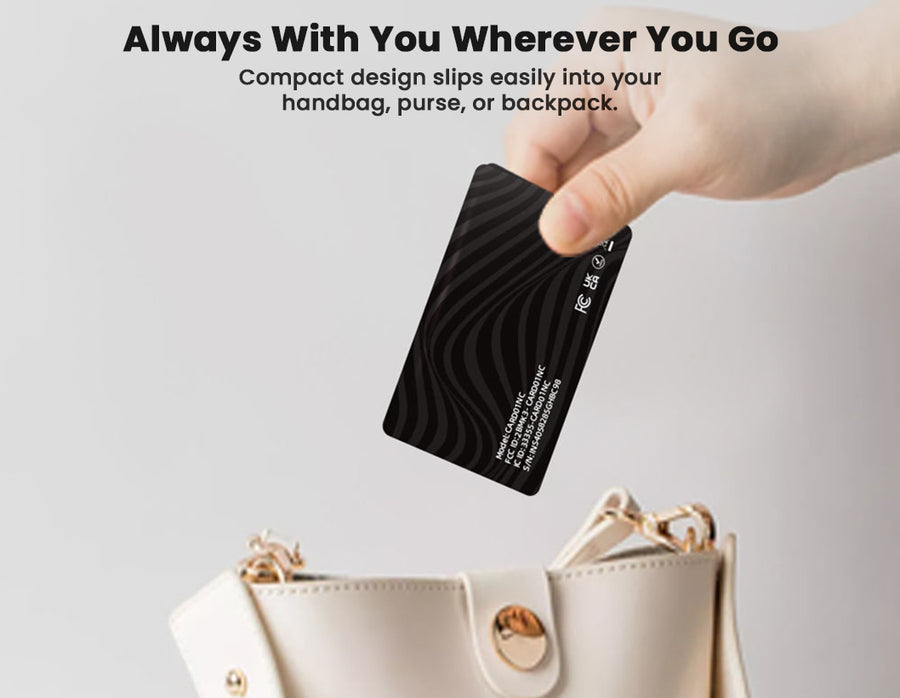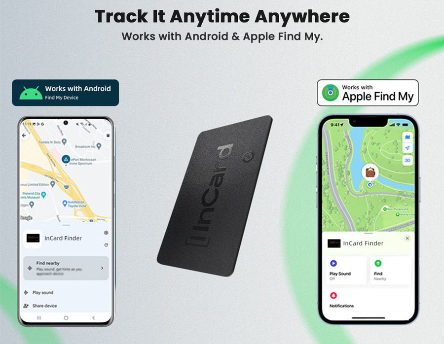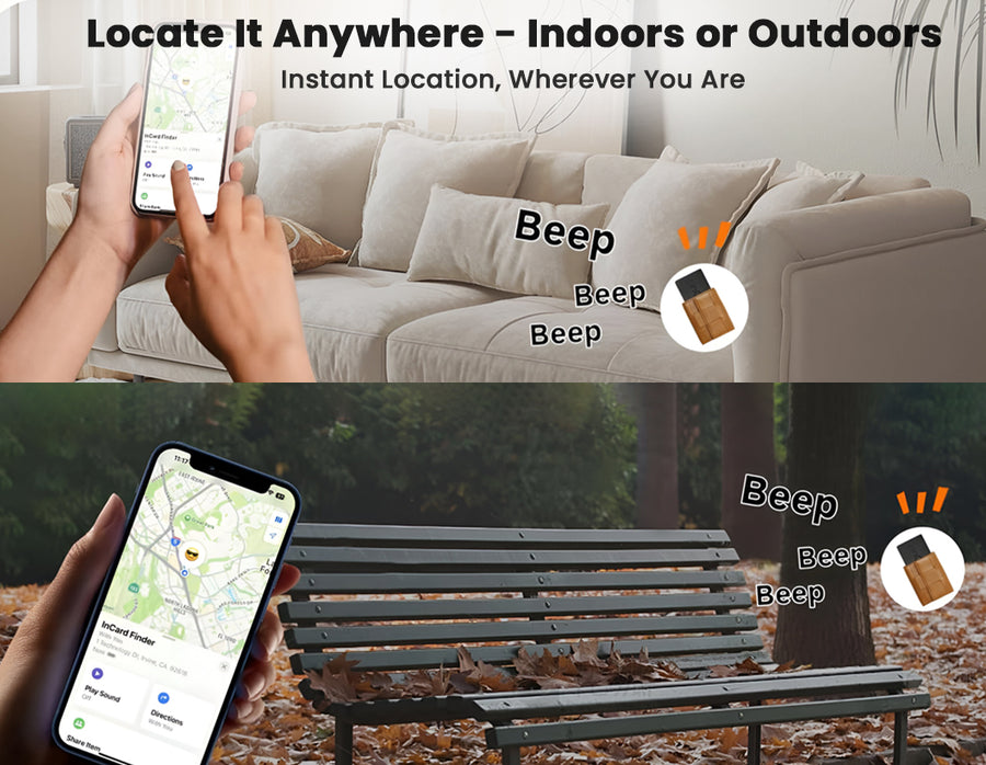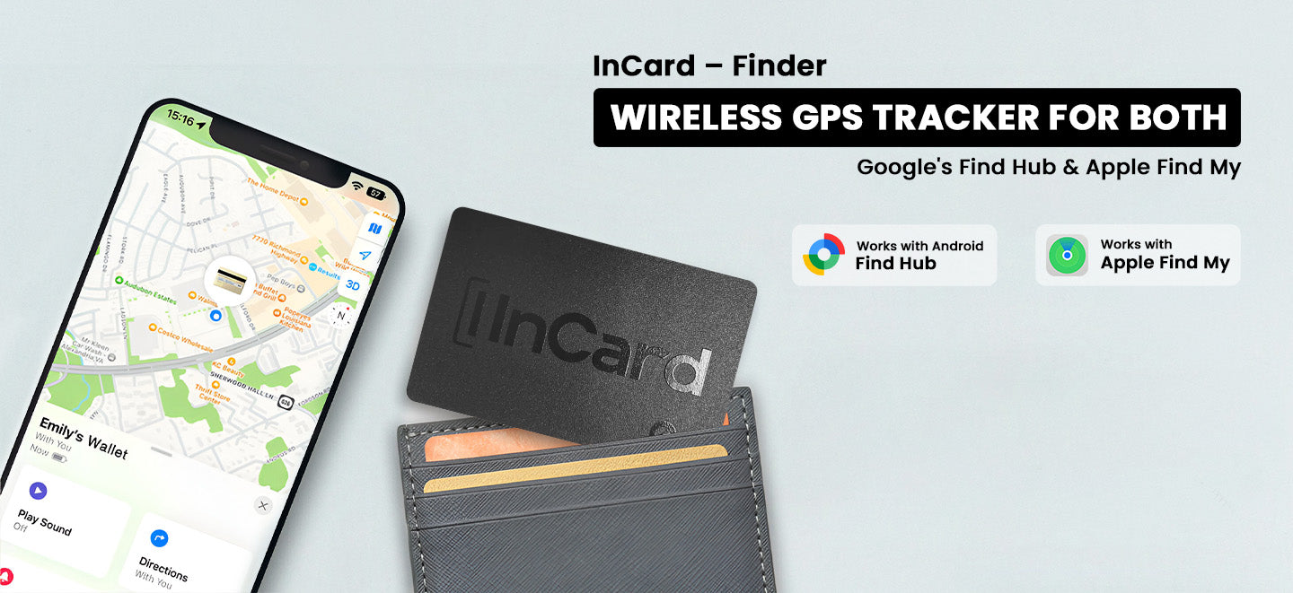 The InCard Finder Wireless GPS Tracker device air tag is the ultimate slim-fit wallet and bag tracking solution. This wallet card GPS Tag built to work seamlessly with both Apple Find My and Google Find My Device networks. Its credit card-sized design (85.6 × 54 × 1.7 mm) fits perfectly in wallets, passport covers, laptop sleeves, or travel pouches, while the rugged and bend-resistant build ensures the wireless GPS tracker lasts in everyday use while delivering up to 170 m of Bluetooth range, a loud 80–90 dB alert, and IP68 waterproofing. Apple AirTag, No extra apps are required—simply connect the wireless GPS tracker to your Apple or Google account and track your valuables directly from your phone’s native app.