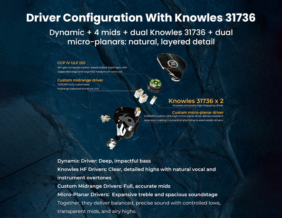 Don't worry, JUZEAR Harrier 1DD + 6BA + 2 Micro Planar Driver IEM comes with a 1 Year warranty against manufacturing defects. We guarantee that every product on Concept Kart is genuine and backed by the Manufacturer's warranty.