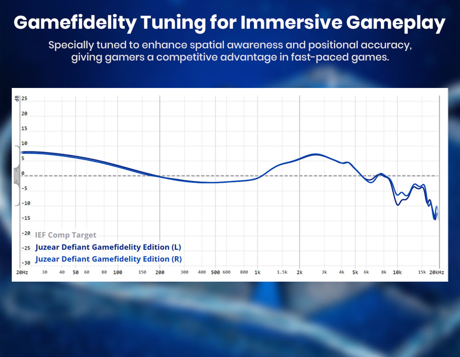 The Juzear Defiant Gamefidelity Edition is crafted for users who want both high-fidelity music performance and competitive gaming precision in a single in-ear monitor. Built around a hybrid driver architecture of 1 Dynamic Driver and 3 Balanced Armatures, the new Defiant delivers a balanced and highly detailed sound signature with powerful bass, natural mids and extended treble.
