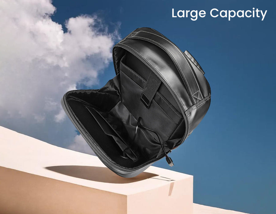 Hard-shell shockproof riding backpack with smart app-controlled color LED display, designed to fit a 15.6" laptop. It offers 20L of storage with a waterproof, scratch, and wear-resistant exterior. The multi-compartment design includes an anti-theft pocket, and the anti-sweat, breathable sponge back ensures comfort during rides. Perfect for tech-savvy commuters and cyclists.