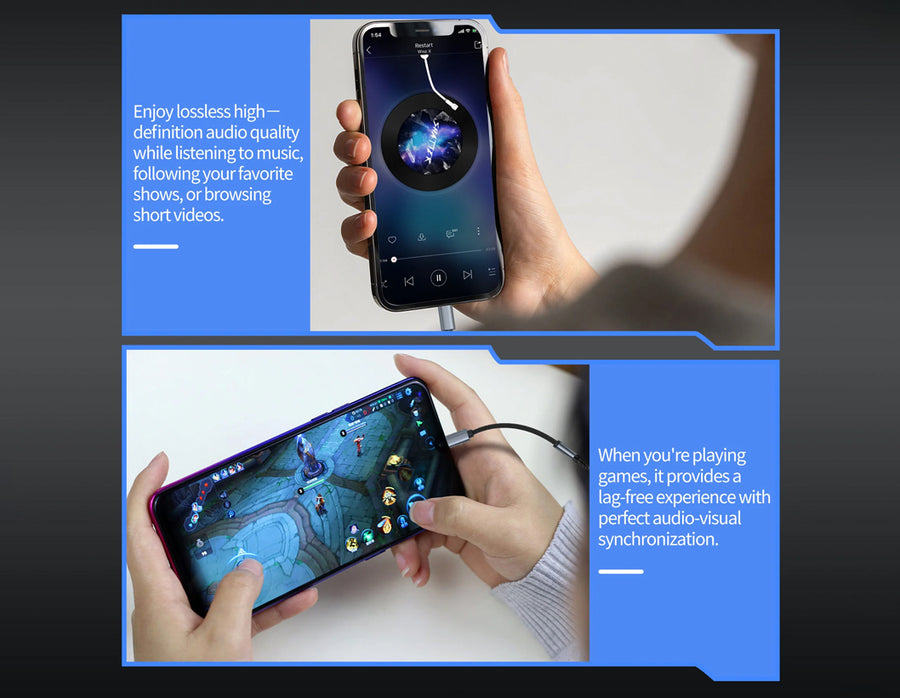 USB TYPE-C MALE AND 3.5MM FEMALE CONNECTIVITY