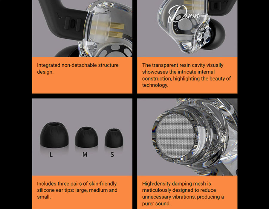 The KZ Dawn in ear monitor (IEMs) are designed for exceptional detail resolution, capturing clear vocals and delicate melodies to showcase the true beauty of sound. Setting a new industry benchmark, these earphones reflect technological innovation and a commitment to excellence. Equipped with meticulously tuned super-linear dynamic drivers, the KZ Dawn in ear monitor delivers peak performance across all frequencies, from deep bass to bright highs, with precision and delicacy. The expansive soundstage creates an immersive listening experience, allowing users to discern every detail, whether in a concert or movie, making each moment feel profound and emotionally stirring.