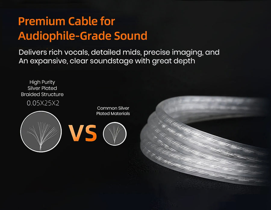 The KZ M2 Upgrade Cable sets a new benchmark in the industry, constructed with high-purity oxygen-free copper (OFC) and finished with silver-plated conductors for ultra-efficient signal transmission. This material ensures low resistance and minimal signal loss, delivering audiophile-grade sound with nuanced tonality, full-bodied vocals, and rich detail across the frequency spectrum. Whether you're enjoying dynamic instrumentals or delicate female vocals, this cable guarantees clarity, warmth, and a spacious soundstage.