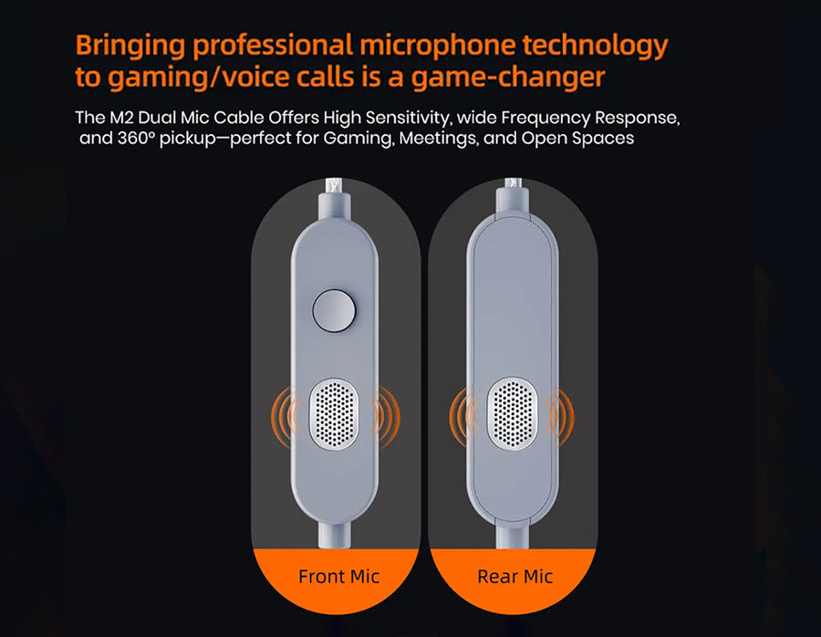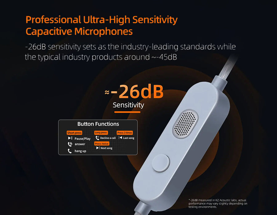 The KZ M2 features a dual-mic array with front and rear ultra-sensitive omnidirectional capacitive HD microphones (≈-26dB), enabling 360° sound capture for clear, natural voice pickup—no need to hold the mic close. This advanced setup ensures effortless communication, making it ideal for gaming, streaming, and remote calls. Built-in controls allow you to play/pause music, manage calls, and switch tracks with ease, offering smooth, hands-free functionality in any environment.