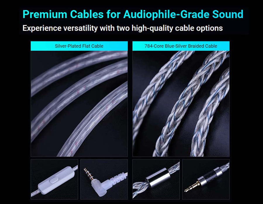 - 1x Detachable Cable (Optional Sliver Plated/784-Core Blue-Silver Braided)