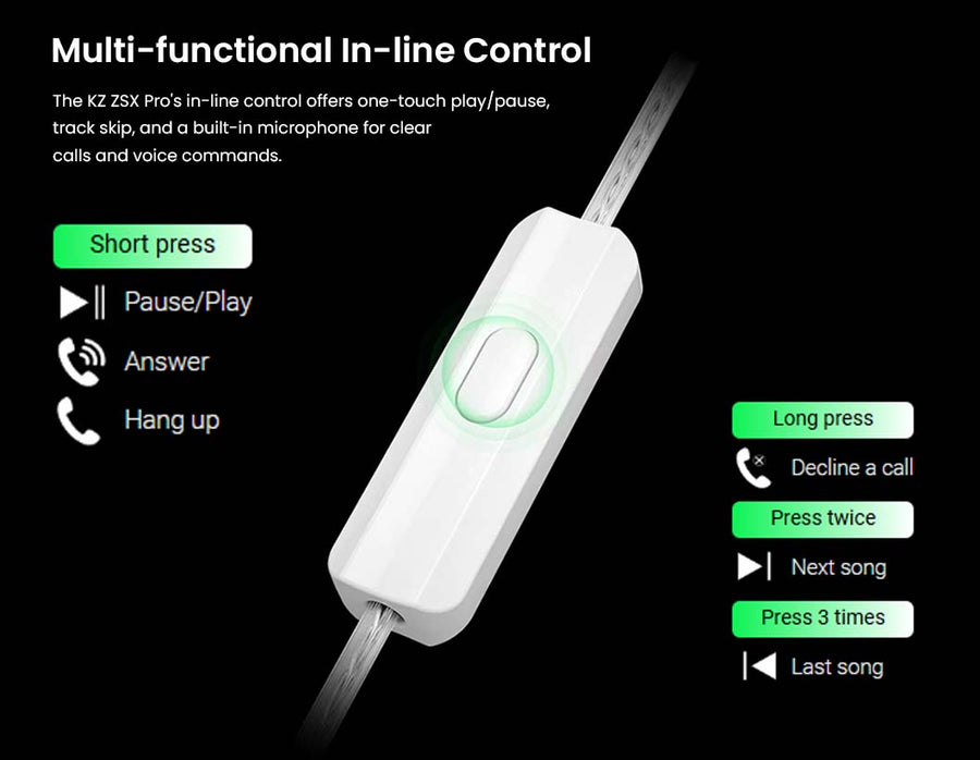 KZ introduces its latest model, the KZ ZSX Pro, a cutting-edge In-Ear Monitor (IEM) designed to elevate your audio experience. This Hybrid IEM features a dynamic driver for precise bass and five balanced armature for clear mids and highs. Its high-purity silver-plated detachable cable reduces signal loss, while the ergonomic design ensures a secure, comfortable fit. Precision crossover technology delivers smooth, Hi-Fi audio, and in-line controls with a microphone offer seamless operation for calls and music. Perfect for audiophiles seeking exceptional performance.