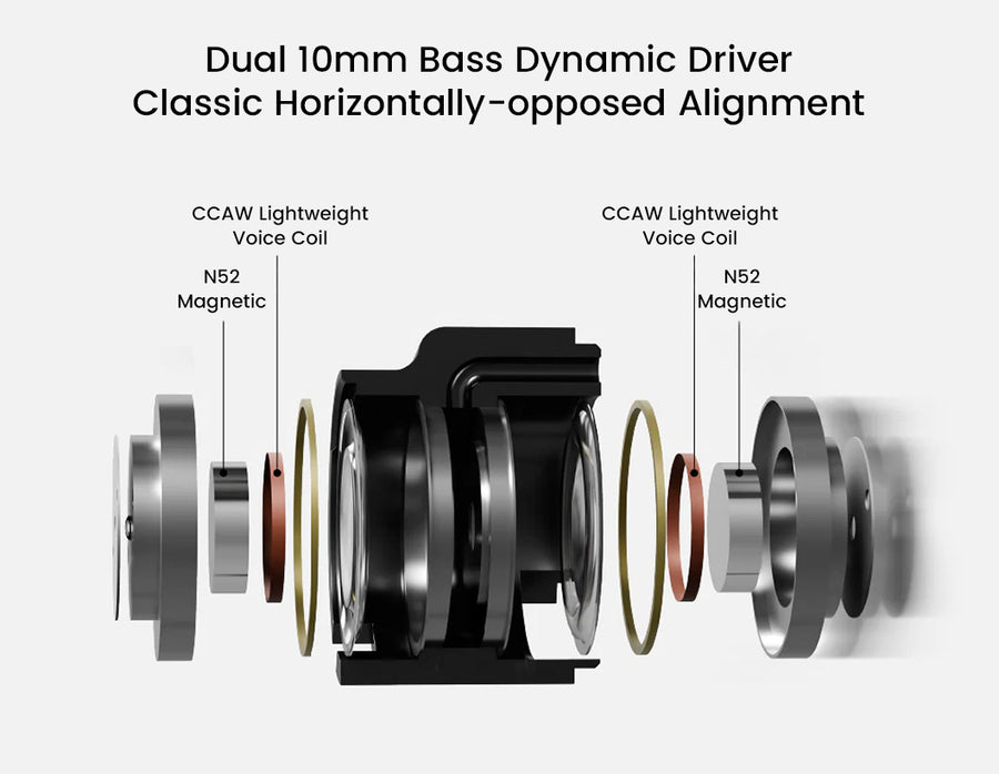 DUAL 10MM DRIVERS FOR POWERFUL BASS