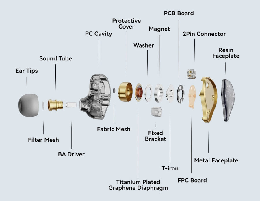 The NiceHCK DB2 IEM, a 1DD+1BA Hybrid IEM, features a dynamic driver and balanced armature to deliver deep bass, smooth mids, and crisp highs. Its 10mm titanium-plated graphene diaphragm ensures precision and durability, while the strategically placed balanced armature reduces high-frequency loss for clear treble. Built with a detachable oxygen-free copper cable, durable resin and aluminum housing, and an ergonomic design, this 1DD+1BA Hybrid IEM provides comfort and stability. The 1DD+1BA Hybrid IEM is perfect for immersive, everyday listening.