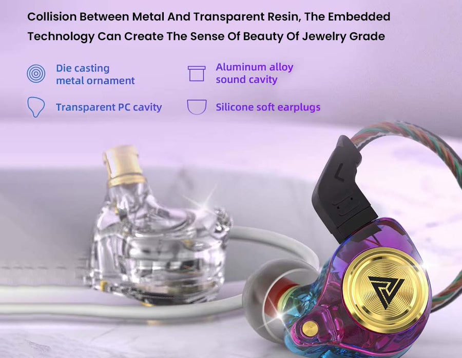 Discover the ultimate listening experience with the QKZ AK3 In Ear Monitors (IEM), designed for superior sound performance and comfort. Equipped with a 10mm dynamic driver and a ball-top titanium-plated PET diaphragm, these IEMs deliver rich bass, crisp mids, and sharp highs, this IEM ensuring precise and accurate sound reproduction. The American-style tone tuning enhances the mid and low frequencies, providing a warm, balanced sound with a wide 3D soundstage. The sleek, jewellery-grade design of IEM features transparent resin and alloy die-cast for an elegant look, while the ergonomic fit ensures comfort and effective noise isolation. With a high-purity oxygen-free copper cable and a 3.5mm gold-plated pin, sound transmission is clear, lossless, and distortion-free. The HD electret microphone and multifunctional key allow for HD communication, perfect for calls, gaming, or broadcasts, making these wired IEMs the ideal choice for a premium audio experience.
