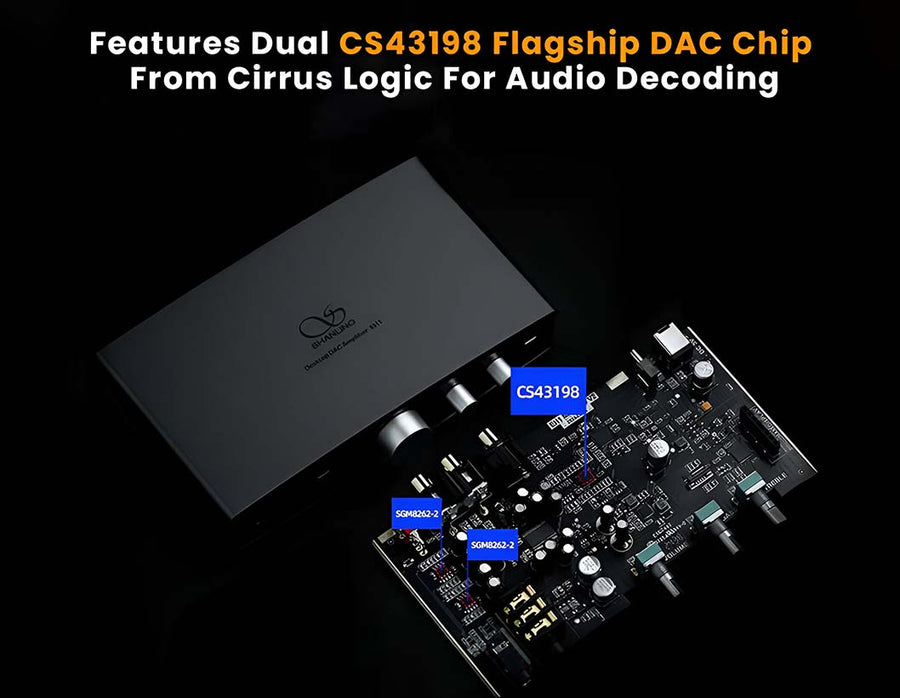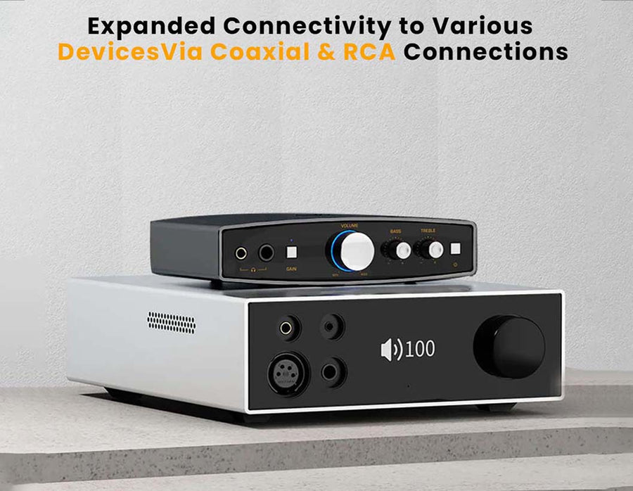 The Shanling EH1 is a game-changing desktop DAC & AMP, featuring groundbreaking technology and unparalleled audio quality, it sets itself apart from the competition. Shanling EH1 comes loaded with Cirrus Logic CS43198 DAC chipset for ultra-clear sound signal processing. You get full support for 32-bit/768 kHz PCM and DSD512 audio signal processing. With its high-end DAC chipset, the EH1 achieves excellent performance achieving minimal distortion and a high SNR of 122dB. Powered by dual SGM8262 op-amps, it offers balanced output and powerful amplification that allows you to drive your IEMs and Headphones with ease. The device includes 6.35mm single-ended and 4.4mm balanced outputs ports, two-level adjustable gain, Independent Bass and Treble adjustment knobs, and a USB input supporting high-resolution audio. It also features a coaxial USB-to-SPDIF output and a colourful sample rate indicator. Power options include USB-C or DC 5V. Shanling EH1 supports UAC1.0 USB mode ensuring broader device compatibility. The box includes a USB-A to USB-C cable, a USB-A to DC cable, a 6.35mm to 3.5mm adapter, and a manual.