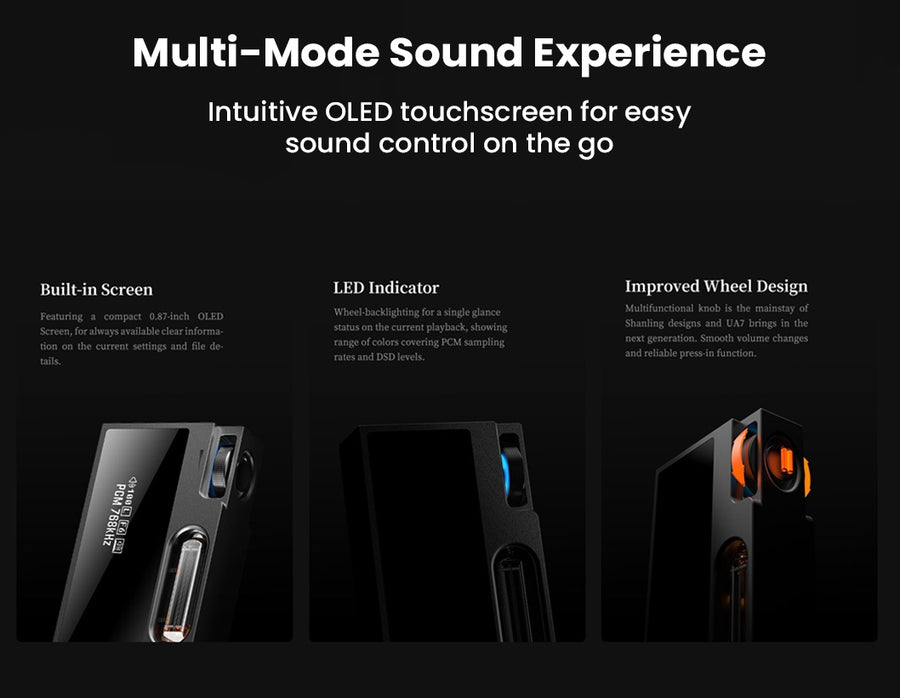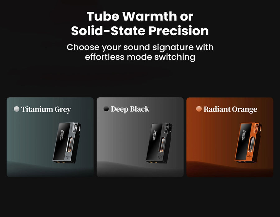 The Shanling UA7 Titanium Grey is the ultimate portable USB DAC/AMP, blending vintage tube warmth with cutting-edge audiophile performance. Powered by dual JAN6418 vacuum tubes and an ESS ES9069 flagship DAC, it decodes Hi-Res PCM up to 768kHz/32bit and native DSD512 for tube-flavored harmonics and expansive soundstaging. Switch effortlessly between tube mode for analog richness or solid-state precision via the intuitive OLED touchscreen, while 577mW balanced power drives any headphones from IEMs to planars.