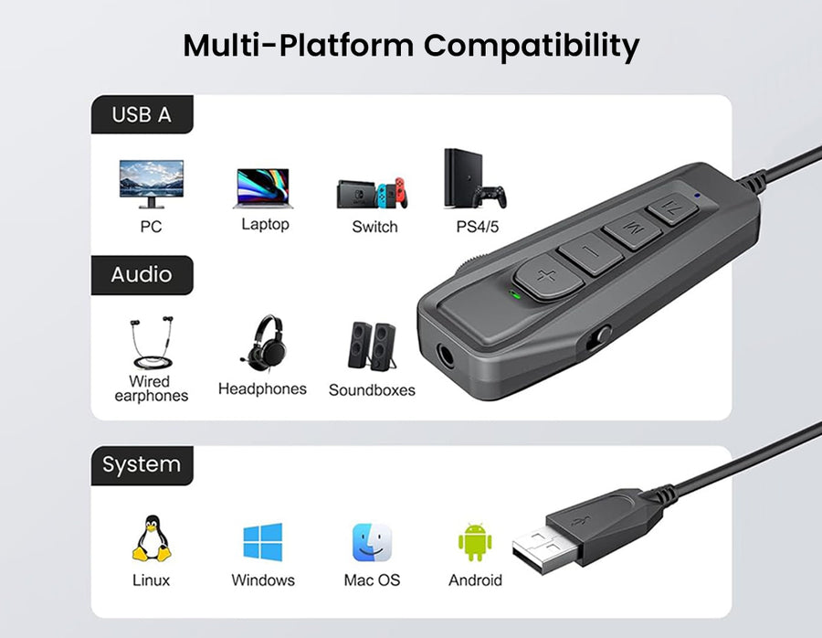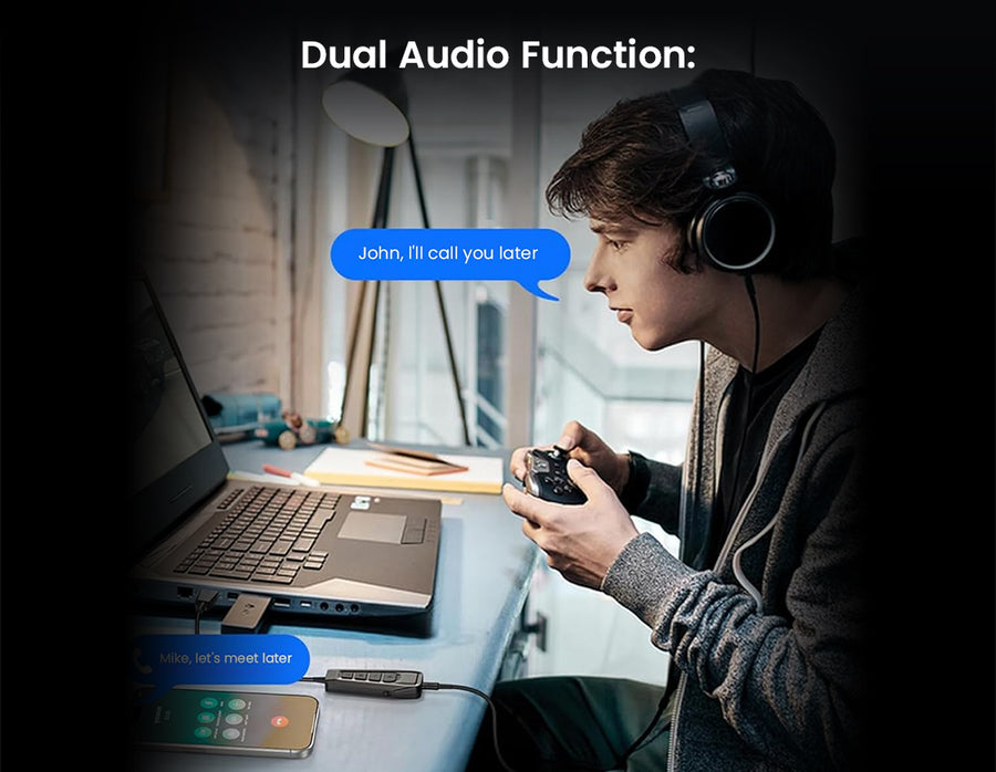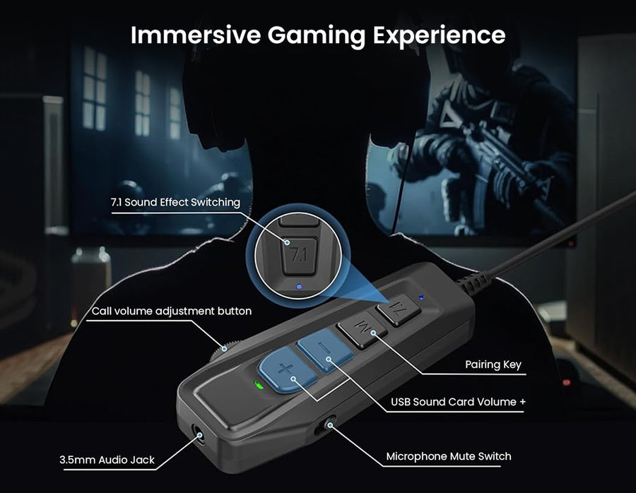 Elevate your gaming and streaming experience with the SIMGOT GEW1 USB External Gaming Sound Card. Designed for dedicated gamers, the GEW1 delivers immersive 7.1 channel virtual surround sound, enhancing spatial audio for maximum in-game awareness. Switch easily between custom audio modes tailored for MOBA, FPS, and more, all powered by a high-performance DSP chipset that refines game effects and voice clarity. The GEW1 features quick-access volume and microphone controls, plus a built-in mute toggle for seamless team communication. Compatible with USB-C and USB-A devices, including PC, Steam Deck and mobile gaming setups; this compact dongle simplifies connectivity while supporting 3.5mm headset and microphone connections.