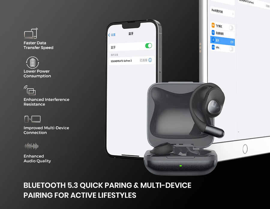 BLUETOOTH 5.3 QUICK PARING & MULTI-DEVICE PAIRING FOR ACTIVE LIFESTYLES