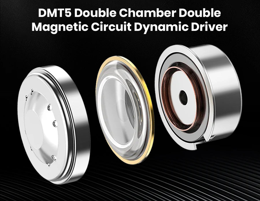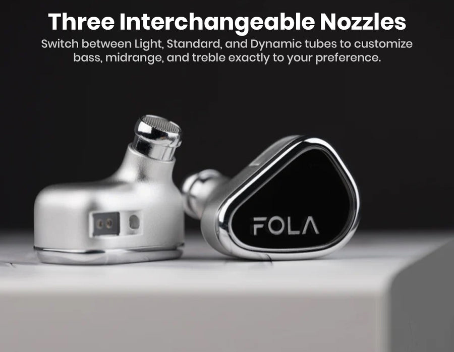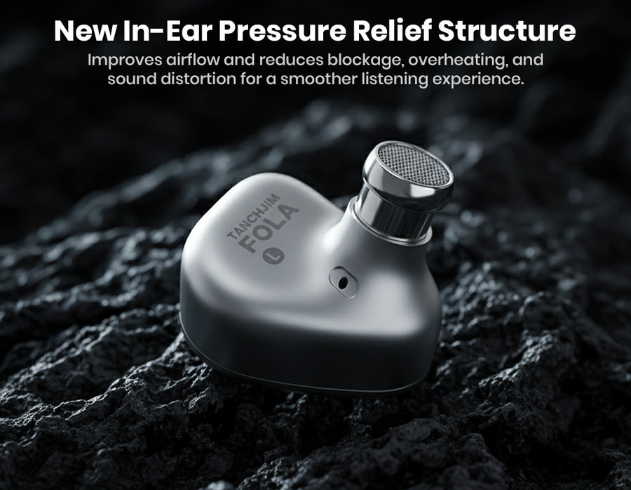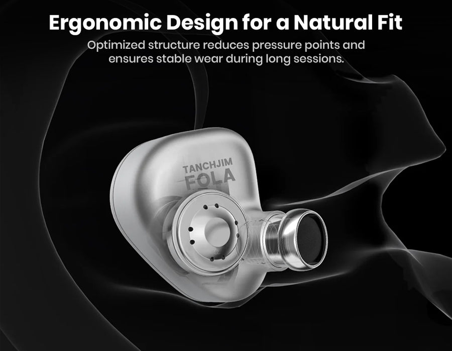 TANCHJIM FOLA is a premium Dual Cavity, Dual Magnetic Single Dynamic Driver IEM featuring the advanced DMT5 architecture for high energy efficiency and minimal distortion. It delivers smooth & precise sound across a wide frequency range, perfect for all music lovers and gamers. This IEM also possesses a distinct HRTF-tuned Virtual 7.1/5.1 surround sound feature, accessible through the TANCHJIM application. Users can customize their listening experience with Three interchangeable nozzle types (L/S/D) that adjust bass and treble response. Crafted with an aluminum alloy body and sapphire glass faceplate, FOLA offers exceptional durability and comfort with air pressure balancing eartips. Versatile connectivity options include interchangeable 3.5mm single-ended, 4.4mm balanced and DSP Type-C terminations, making it compatible with various devices and enhancing sound quality. This combination of innovation, customization, and premium build makes Tanchjim Fola a standout choice for those seeking clear, detailed and immersive audio experience wherever they go.