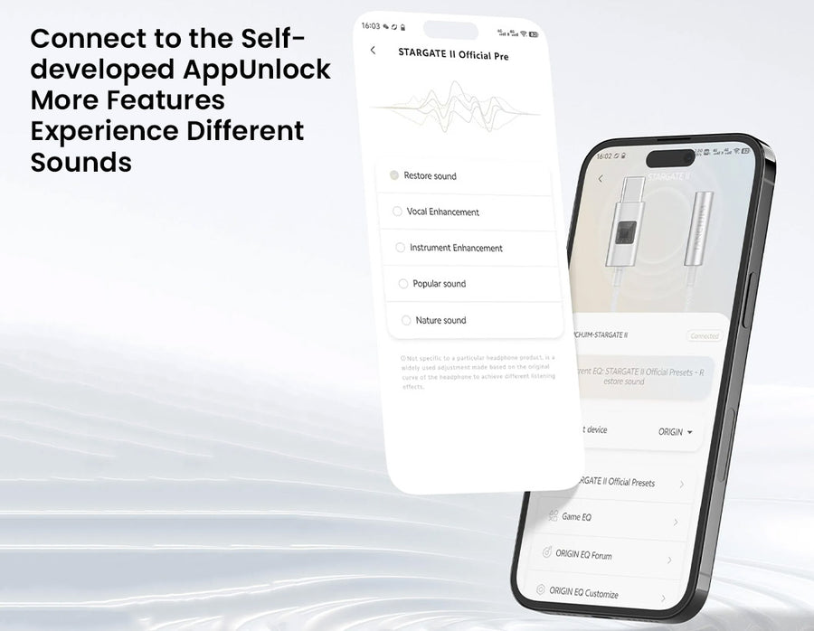 The Tanchjim Stargate 2 is a high-resolution DAC & AMP designed for audiophiles and professionals. This DAC & AMP supports PCM up to 32-bit/384kHz and native DSD256 for crystal-clear sound quality. Powered by the Cirrus Logic CS43131 DAC chip, it delivers ultra-low distortion of 0.0002% and a signal-to-noise ratio exceeding 127dB. With 82mW output at 16Ω, it drives headphones effectively. An 8-band parametric EQ allows precise sound tuning via the Tanchjim app. It supports in-line microphones for clear calls and features a lightweight CNC aluminum alloy body with universal USB Type-C connectivity, making it a versatile DAC & AMP solution for all your audio needs.