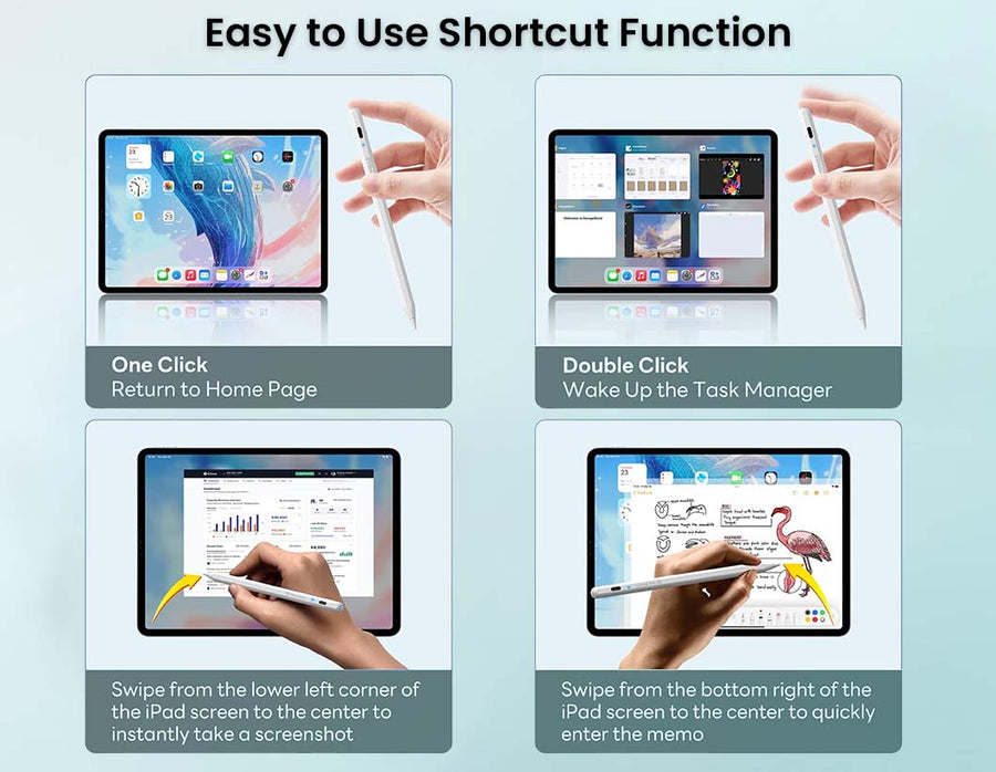 - Step 1: Touch and hold the top of the pencil for 4 seconds to turn it on—the blue light will start blinking.