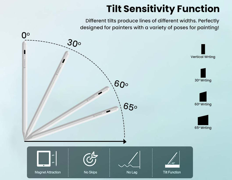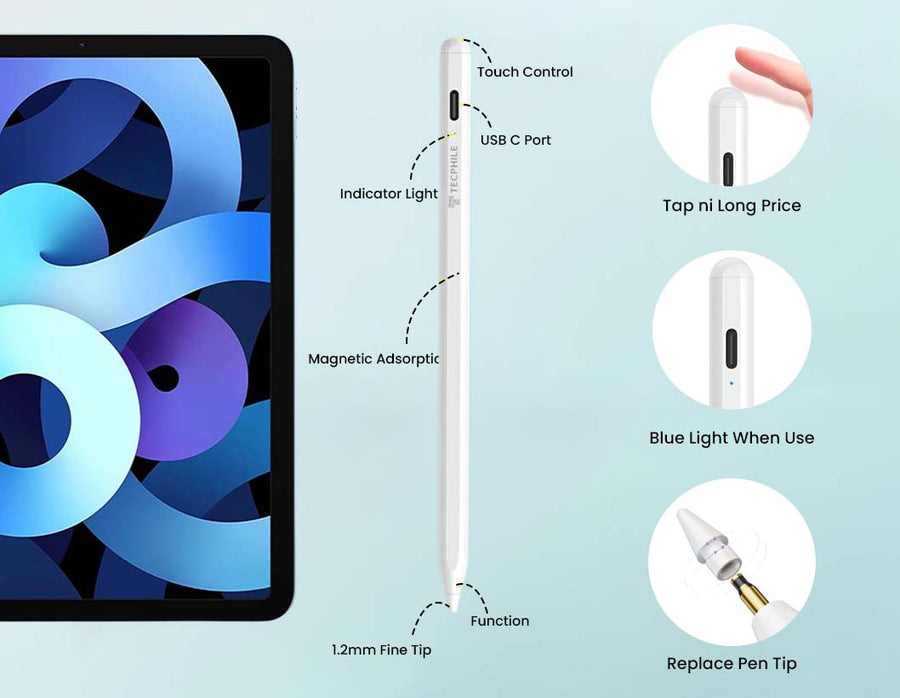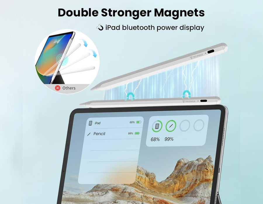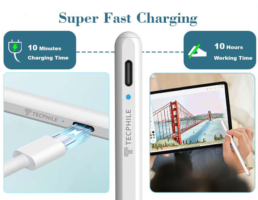 TECPHILE iPad Pencil Alternative is a versatile, Bluetooth-enabled stylus designed for iPad 10th/ 11th Gen, iPad Pro 11 ,12.9 & M4, iPad Air 3/4/5/M2 2024 /M3 2025, Mini 6/ A17 Pro, and more, supporting iOS 12.2 and above. Experience seamless writing with palm rejection and advanced tilt sensitivity for precise strokes. With a fast 10-minute charge, enjoy up to 10 hours of use. The magnetic attachment keeps it secure, while the ergonomic design ensures comfort. iPad Pencil Includes 2 replacement nibs for extended use. Perfect for writing, drawing, and gaming, this iPad Pencil stylus is a must-have for iPad users seeking accuracy and efficiency.