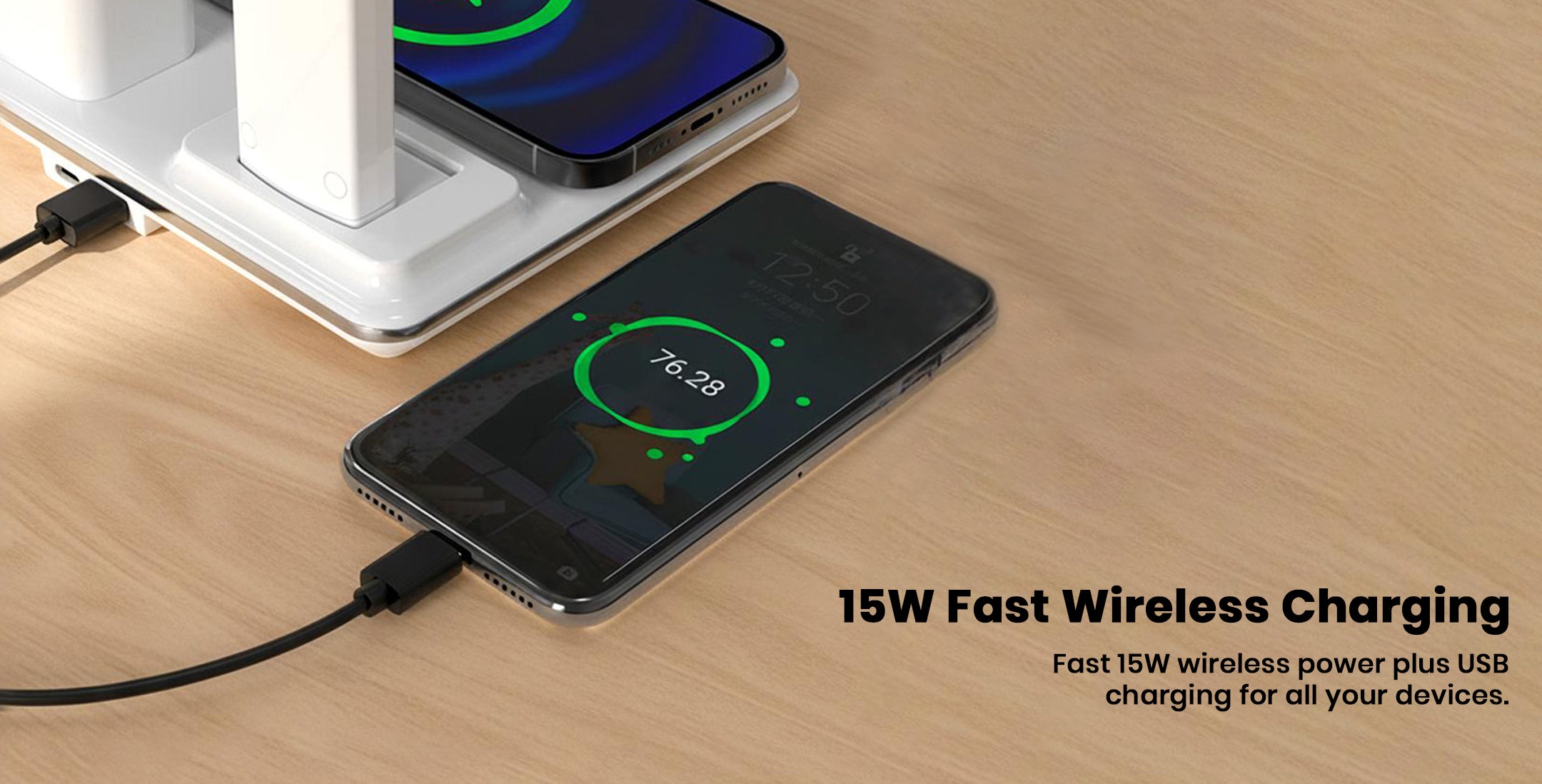 Wireless charging performance may vary depending on smartphone model and case thickness.