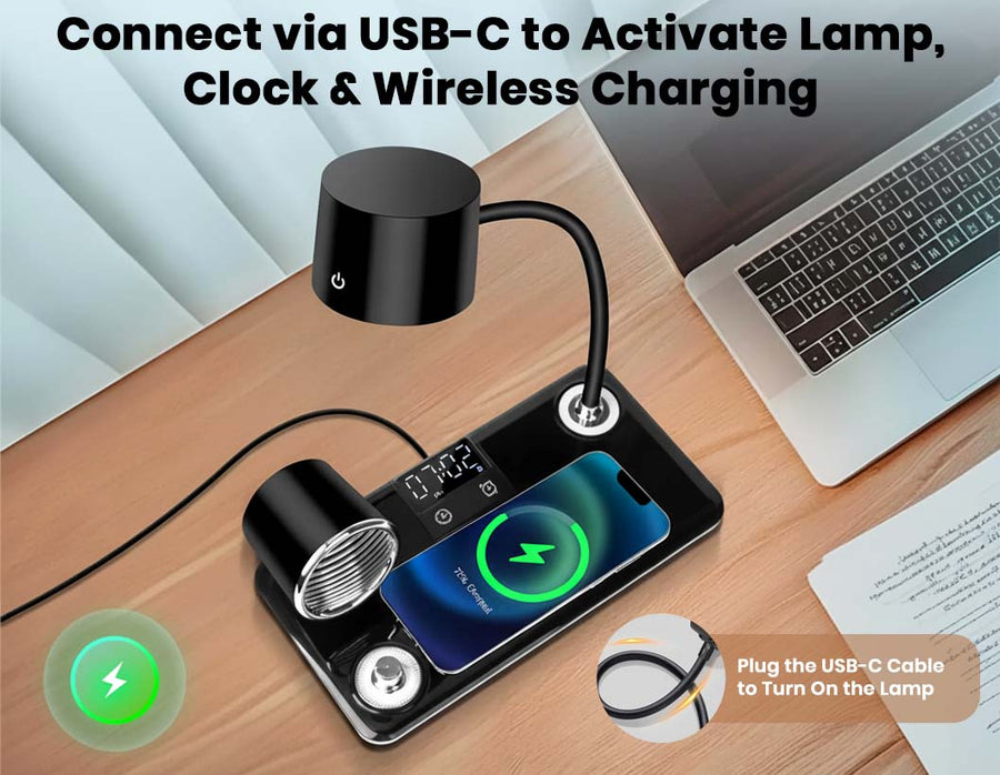 Smart USB-C Powered Desk Lamp with Speaker, Clock & 3-Mode Adaptive Lighting