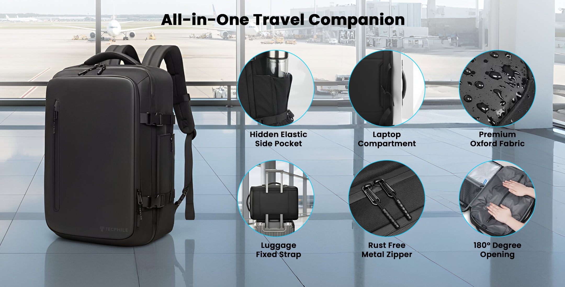 Meet the TECPHILE AirPack Laptop Backpack with Vacuum Compartment – the all-in-one travel game-changer built for smart packers and modern explorers. With its built-in vacuum compression system, this 35L backpack lets you pack up to 50% more without extra bulk, keeping your clothes and essentials neatly organized. Crafted from waterproof premium Oxford fabric and designed with multiple compartments, wet-dry storage, and a secure laptop sleeve for up to 16” devices, it’s made to handle everything from business trips to weekend getaways. Convertible Whether worn as a backpack, duffel, or messenger bag, it gives you comfort, durability, and the freedom to travel lighter, smarter, and in style.