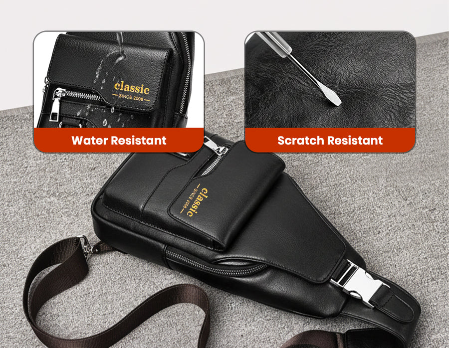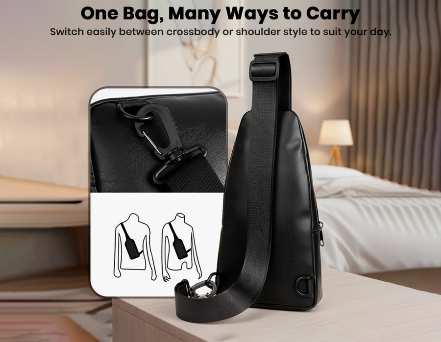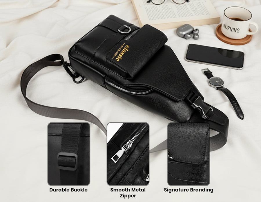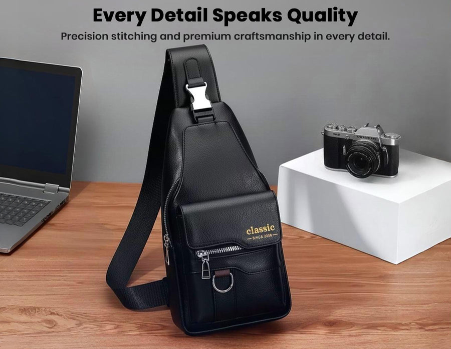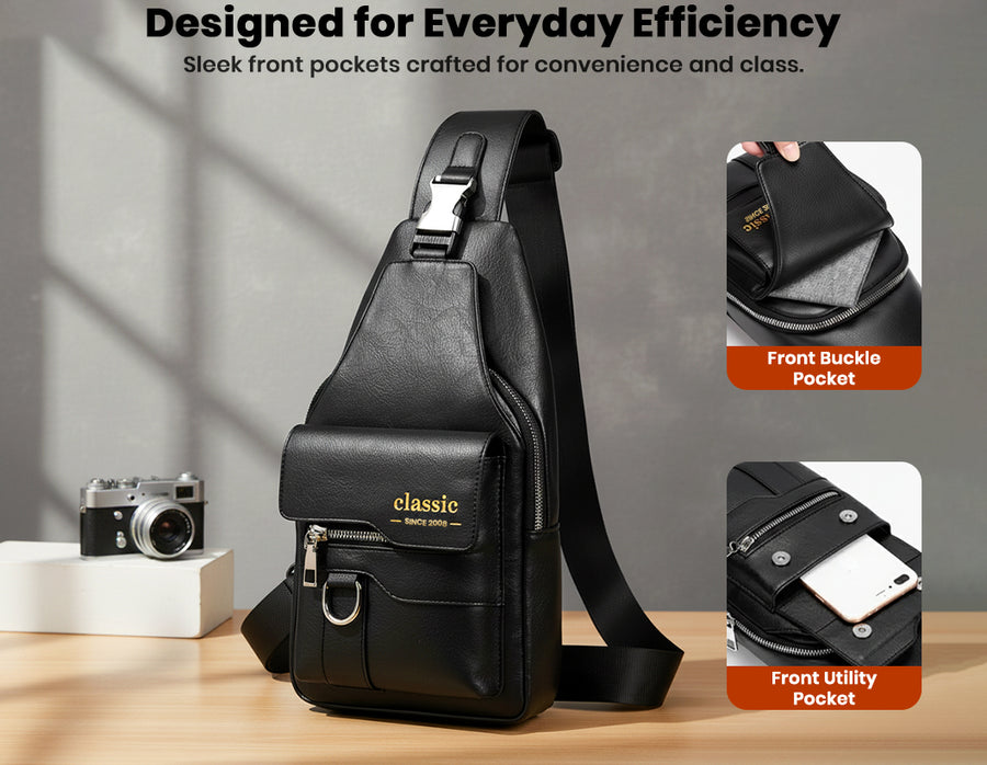 Discover the perfect blend of fashion and function with the all new ‘Classic 2008’ sling bag. Crafted from premium PU leather, it features a sleek and contemporary design that’s both stylish and durable. The bag is equipped with adjustable and detachable straps, allowing for a customized yet comfortable fit tailored to any occasion. Stay organized on the go with four designated sections; ideal for carrying everything from your phone and wallet to daily essentials. The easy-access front pocket ensures quick retrieval of important items, while a dedicated key chain holder keeps your keys secure and handy. Whether for work, travel or casual outings, this sling bag offers versatile organization, modern flair, and reliable everyday convenience.