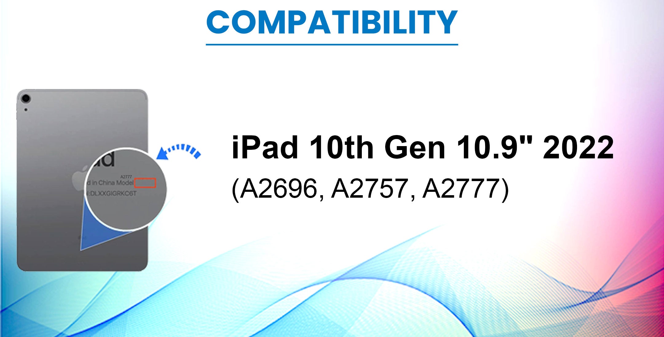 This 3-in-1 keyboard case and transparent cover are specifically tailored for the New 2022 iPad 10th Generation (10.9-inch) and models no. A2696, A2757, A2777. Easily transform your iPad into a laptop by magnetically attaching it to the back cover, connecting the wireless keyboard, and placing your stylus Pencil on top. Enjoy multiple viewing angles with its 360-degree rotating design and adjustable stand options. The built-in multi-gesture trackpad allows for seamless navigation, while the sturdy construction provides ultimate protection against shocks and drops. Portable and convenient, it's perfect for work, study, or entertainment on the go.
