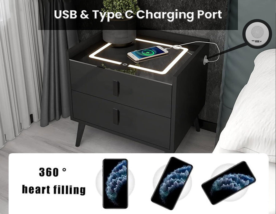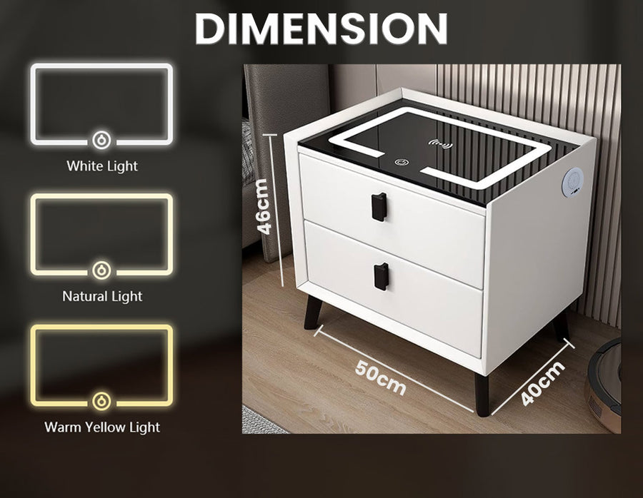 MULTIFUNCTIONAL SMART LED NIGHTSTAND WITH 2 DRAWERS