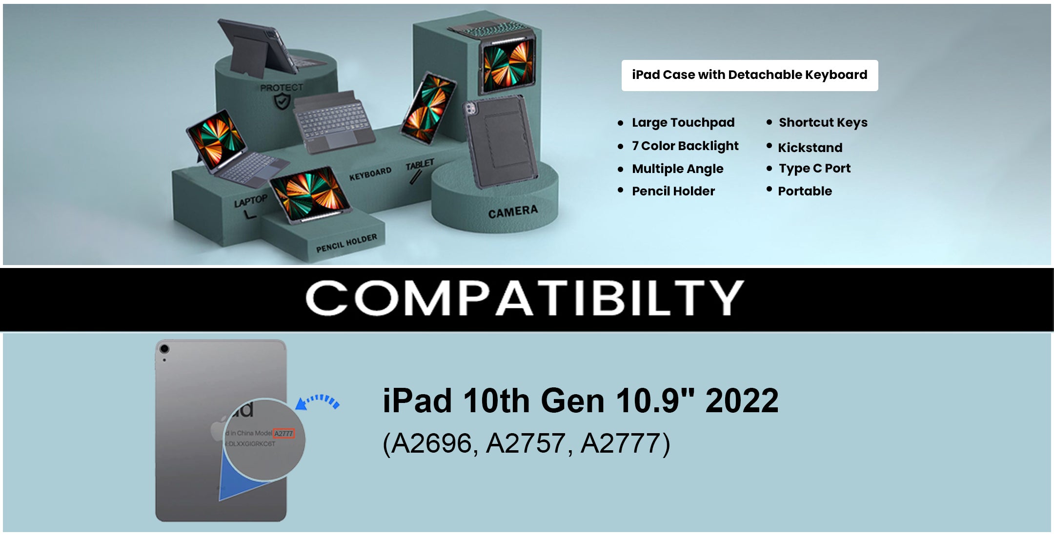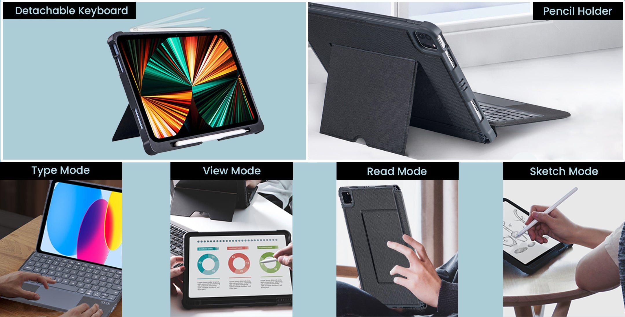 The iPad case with a detachable keyboard offers a multifunctional solution for users, featuring a large touchpad, 7 color backlight, and multiple viewing angles.
