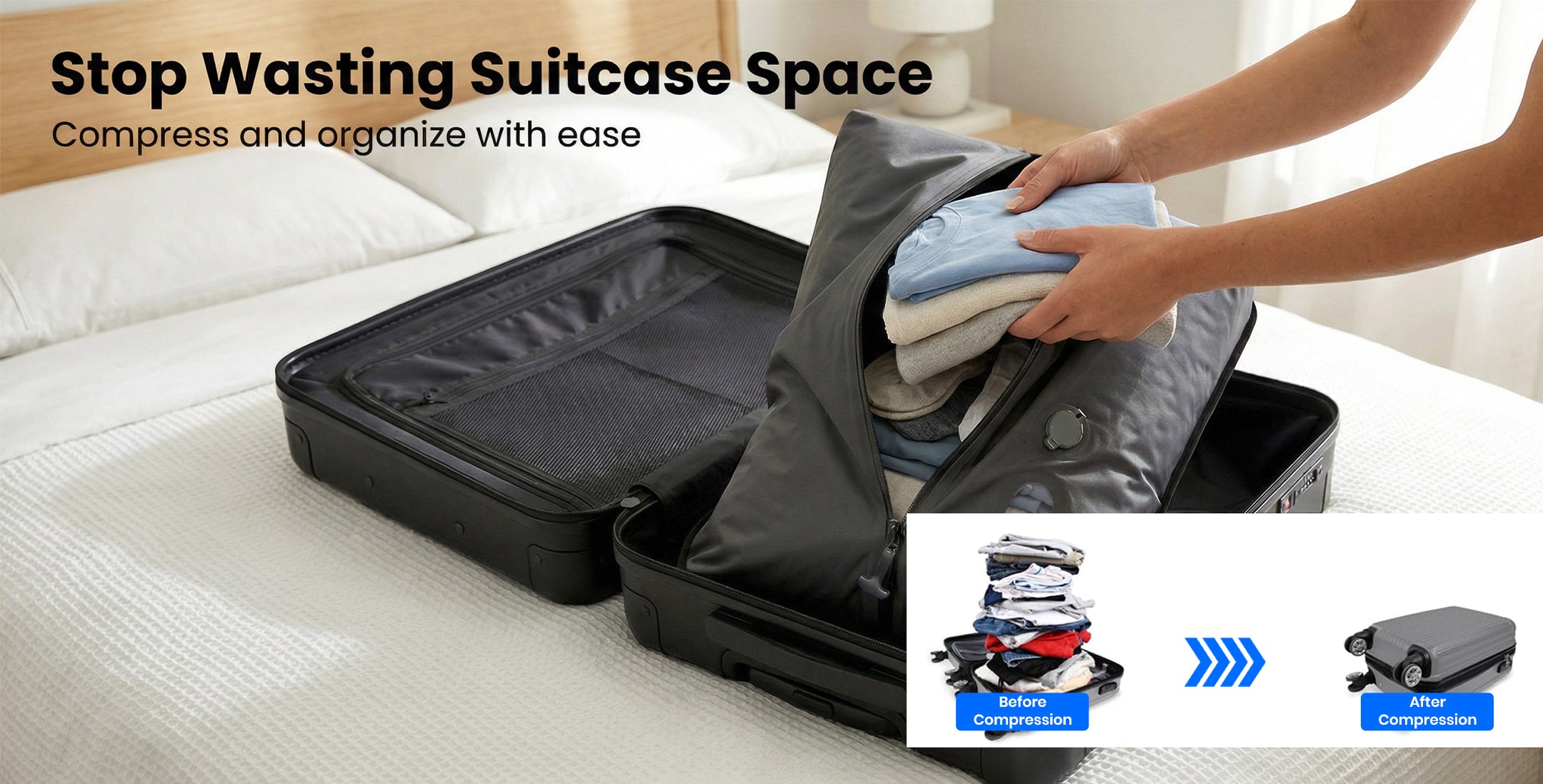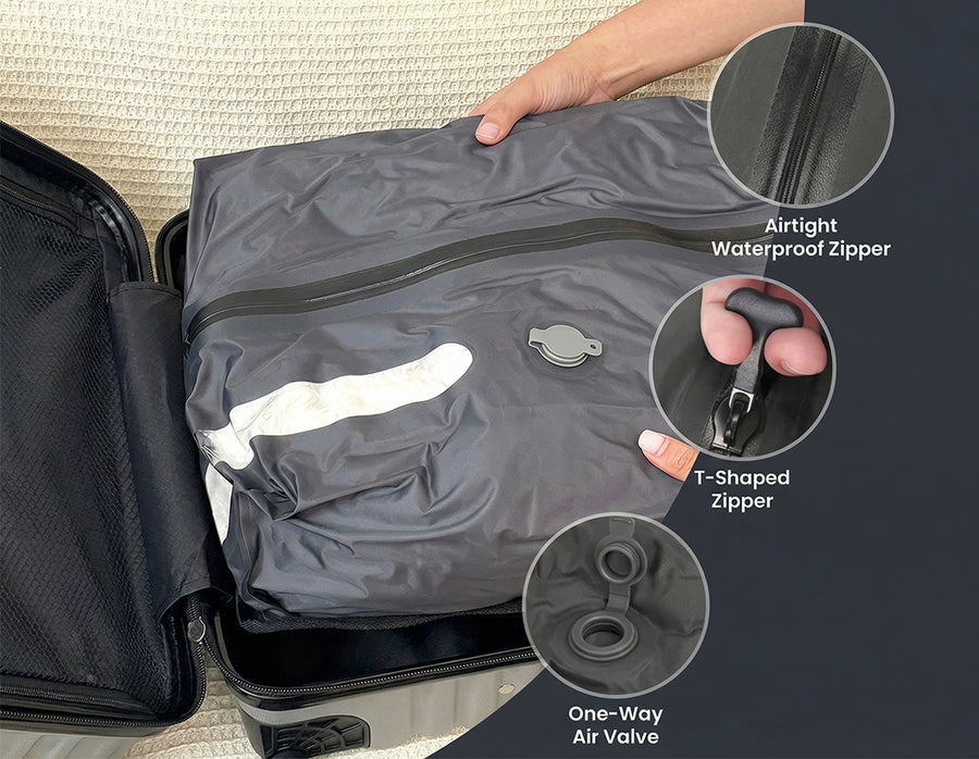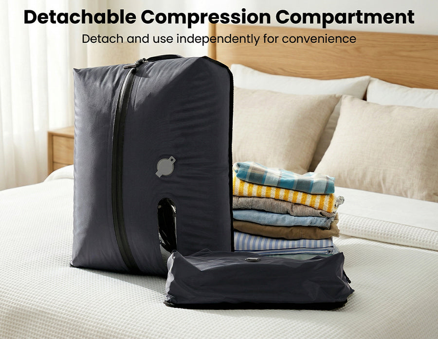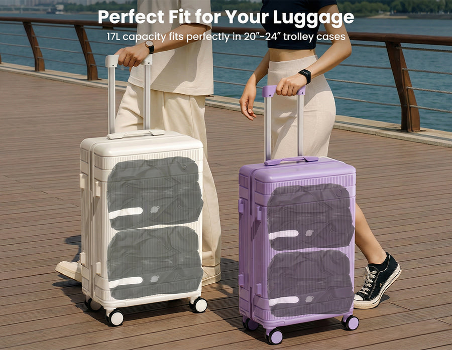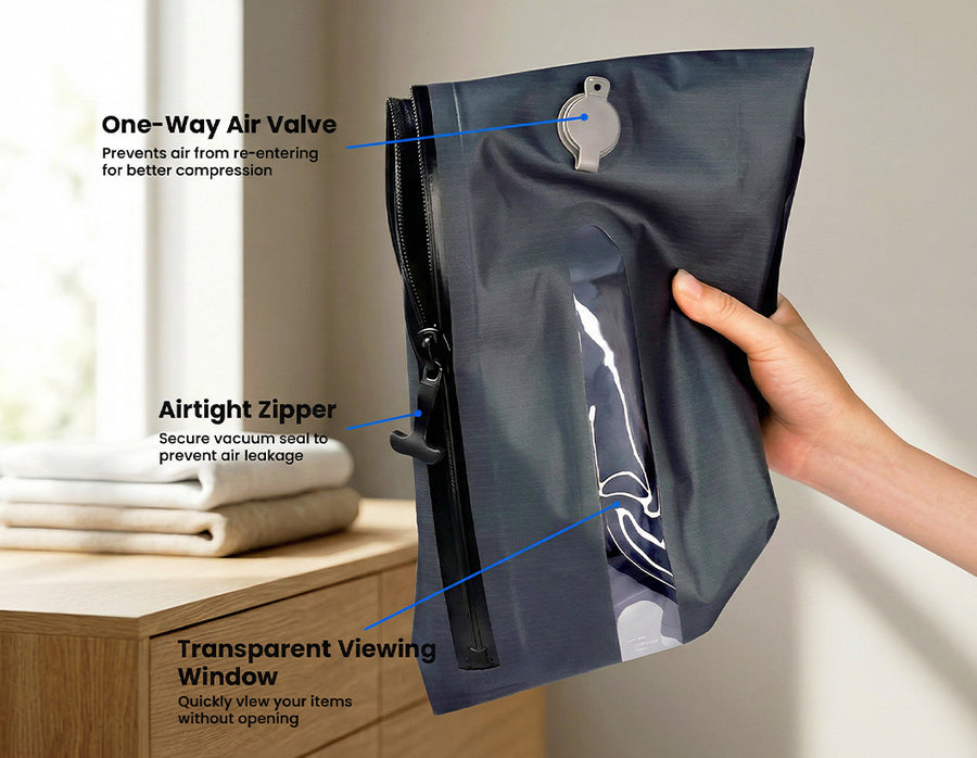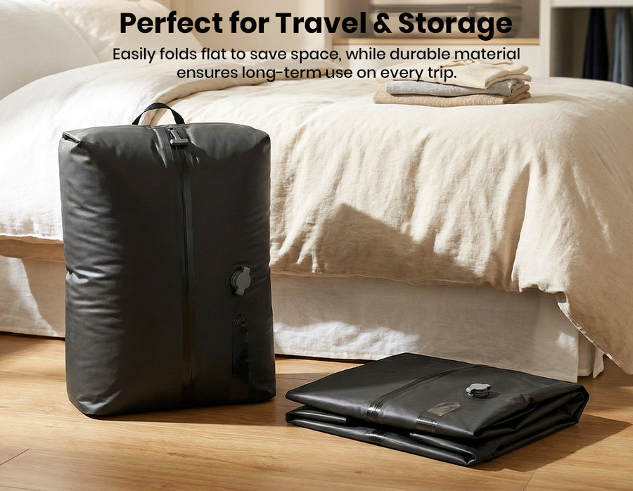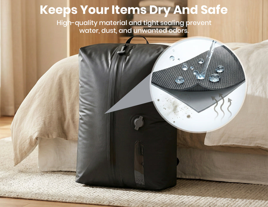 These vacuum storage bags offer a compact and efficient way to save space, featuring a 17L capacity that can compress items by up to 80%—perfect for packing bulky clothing, blankets, and travel essentials. They come with a wireless, rechargeable vacuum pump (1500mAh, USB-C) for easy, cordless operation, though usage is optional. Made from durable, waterproof polyester + TPU with double-seal protection, they keep contents safe from moisture, dust, and odors. The bags include rust-free heavy-duty zippers for long-lasting airtight compression, along with a transparent window for quick item identification. Designed to be foldable, reusable, and eco-friendly, they’re ideal for travel, home organization, moving, or seasonal storage and are easy to maintain with simple hand washing and proper care.