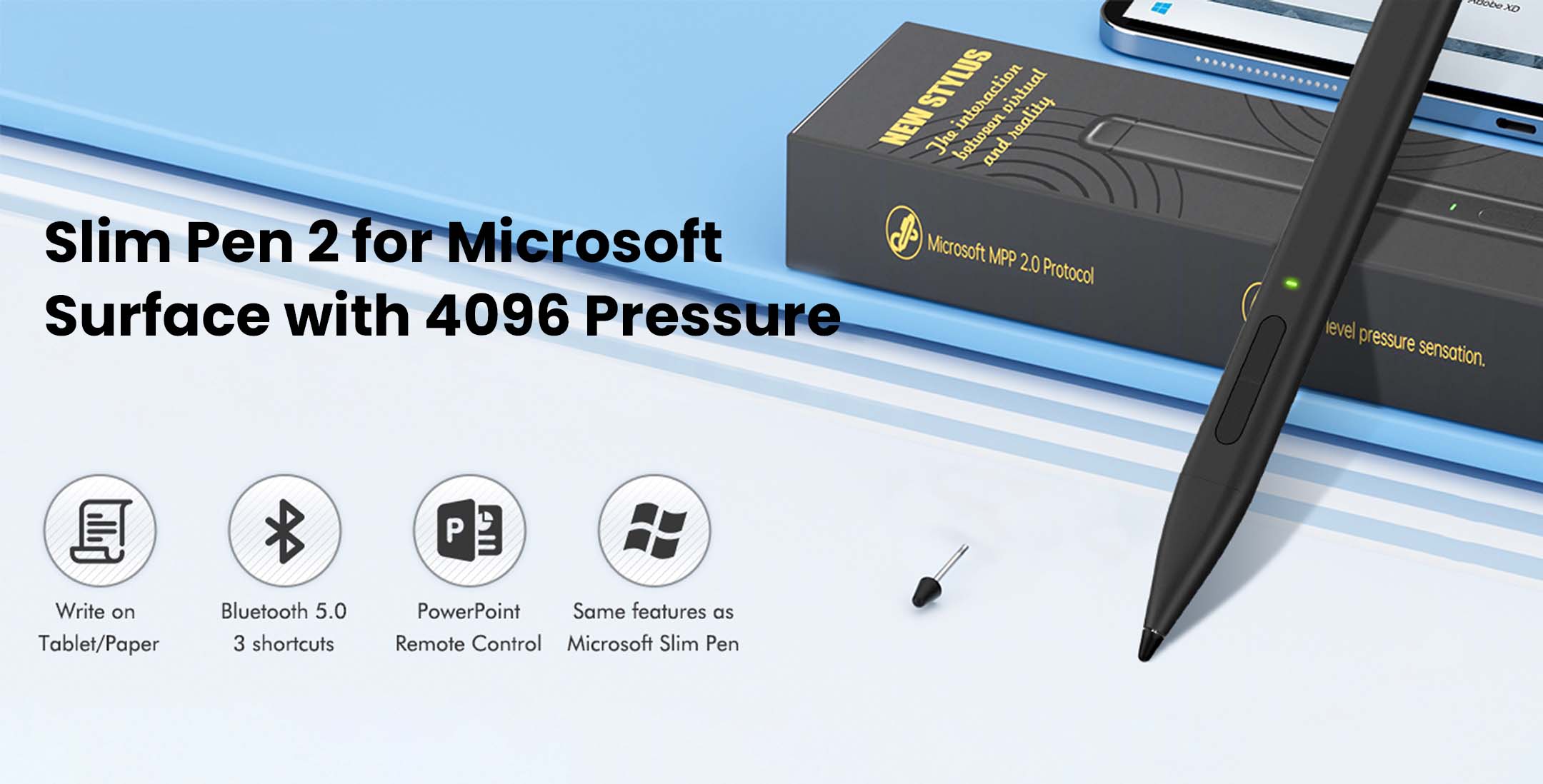 Take your Microsoft Surface experience to the next level with the TECPHILE X1 Pro Microsoft Surface Slim Pen 2 Stylus Pen, designed to deliver unparalleled precision and accuracy. With 4096 levels of pressure sensitivity, advanced palm rejection, and tilt functionality, this Microsoft Surface Slim Pen 2 Stylus Pen is perfect for creatives, professionals, and anyone seeking a seamless writing and drawing experience. Featuring a magnetic design, replacement tips, and up to 60 hours of usage on a single 1-hour charge, this rechargeable Microsoft Surface Slim Pen 2 Stylus Pen also includes an integrated LED indicator, eraser function, and Type-C fast charging, making it the ultimate tool for unlocking your full creative potential.