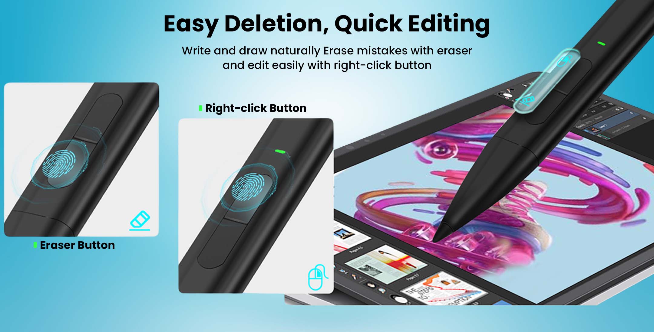 - 2. The indicator light above it will turn green, showing that the stylus is on.