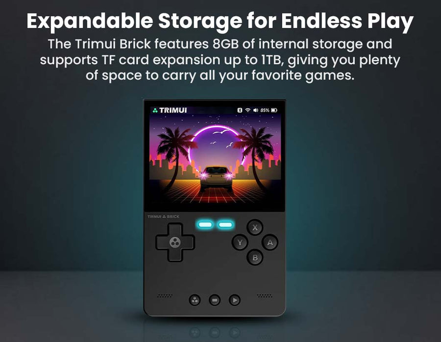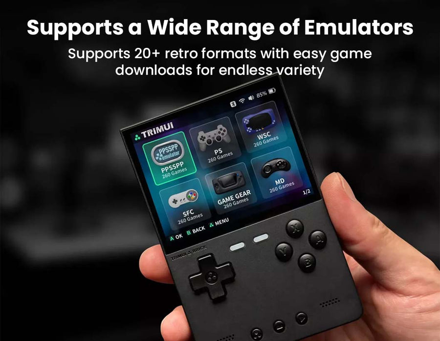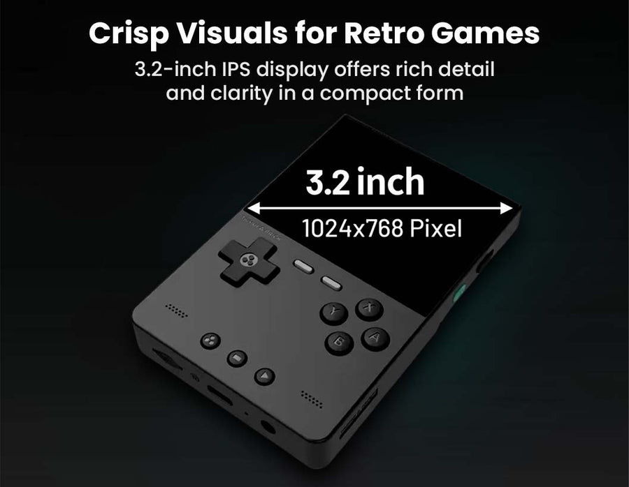 The Trimui Brick Handheld Game Console is a compact, portable gaming device that seamlessly blends classic gaming nostalgia with modern features. It features a crisp 3.2-inch IPS display with a resolution of 1024x768 pixels, offering clear visuals that are comparable to flagship smartphones. This high-resolution display ensures that games and multimedia content appear vibrant and detailed, providing an immersive experience for users. Handheld game console Powered by an Allwinner A133P CPU and an Imagination PowerVR GE8300 GPU,handheld game console ensures smooth gameplay across a variety of titles. Portable game console supports external TF card expansion up to 1TB, allowing users to build an extensive library of games and enjoy endless entertainment possibilities on the go.