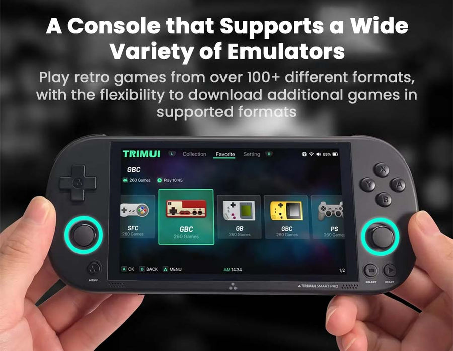 The TRIMUI Smart Pro handheld game console is a high-performance handheld game console designed for retro gaming enthusiasts. Smart digital display seamlessly blends modern hardware with classic gaming experiences, delivering high performance across multiple emulation platforms. The device boasts a vibrant 4.96-inch IPS display with 1280x720 resolution, ensuring crisp visuals for retro titles. With the Allwinner A133P processor and Imagination PowerVR GE8300 GPU, handheld game console provides smooth gameplay across supported platforms.