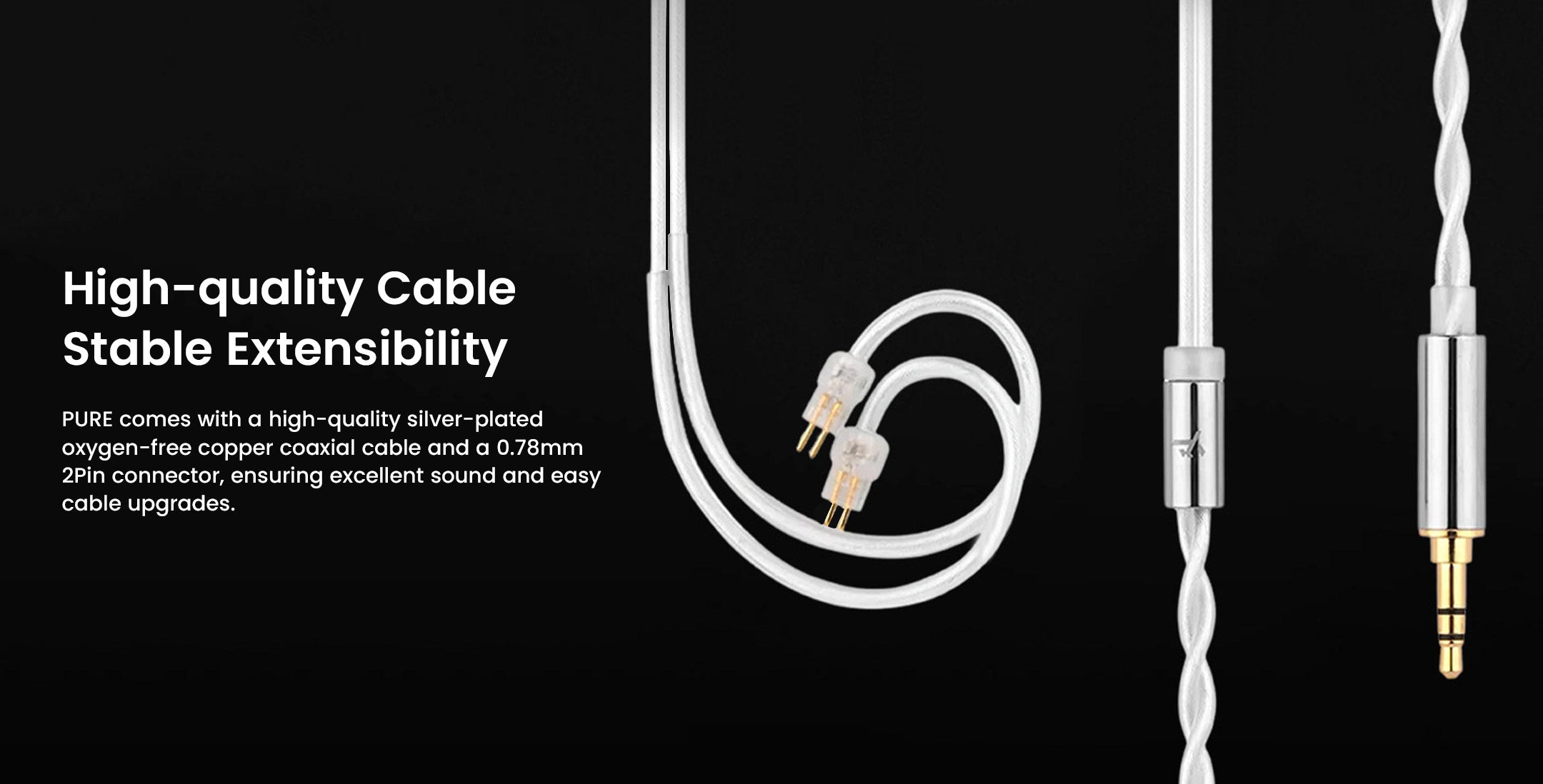 The TRUTHEAR Pure is an expertly crafted In-Ear Monitor (IEM) inspired by the HEXA’s design and refined with feedback from audio professionals and advanced HATS tuning data. This TRUTHEAR Pure IEM features a hybrid 1DD + 3BA driver setup, combining a 10 mm LCP dynamic driver for deep bass and 3 balanced armature drivers for crystal-clear mids and highs. With a precision 3-way crossover and DLP 3D-printed nozzle, it delivers flawless phase alignment and a spacious soundstage. The ergonomic resin shell, crafted using HeyGears’ advanced 3D printing, ensures comfort and noise isolation, while its detachable silver-plated 2-pin IEM cable adds durability and flexibility.