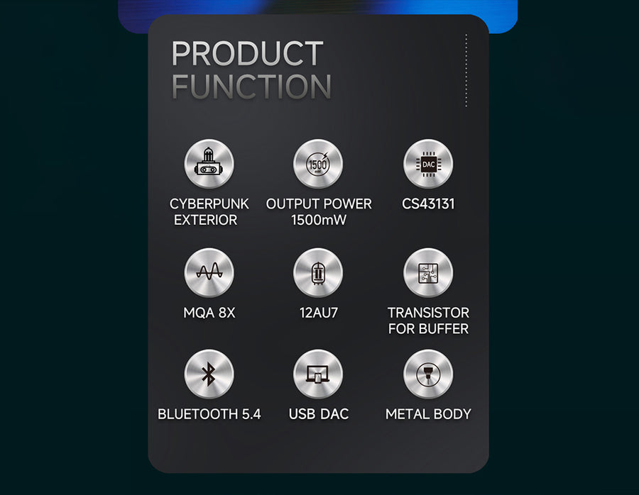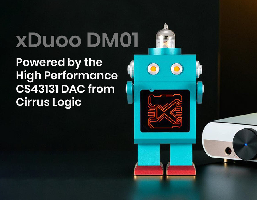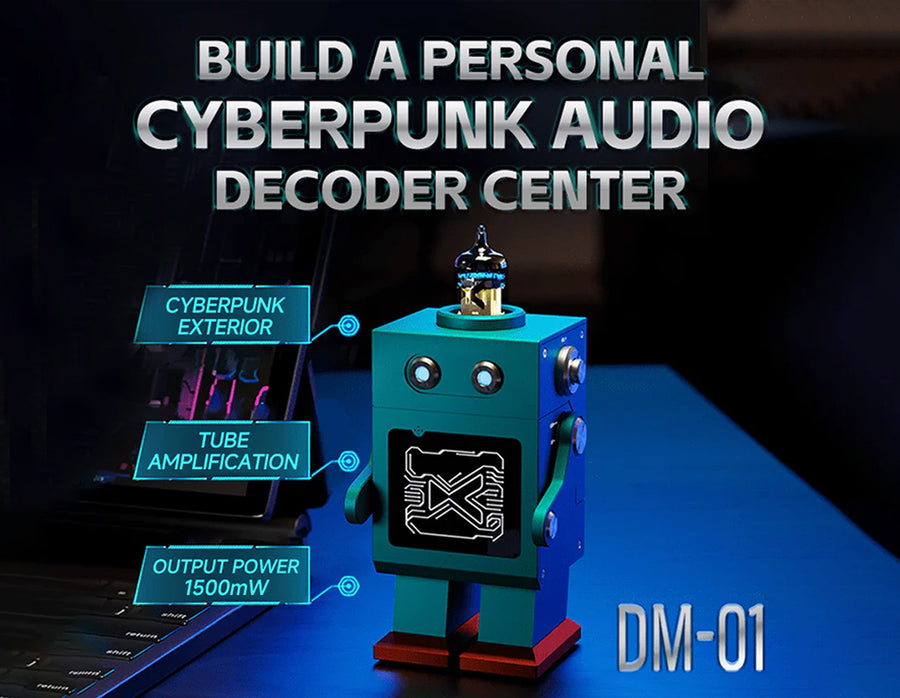 Cyberpunk enthusiasts, meet the xDuoo DM-01, a striking desktop DAC/Amp with a unique robot-inspired design that stands out as the cutest addition to any setup. Equipped with the advanced CS43131 DAC chip and a hybrid amplification system combining a 12AU7 tube for rich, smooth sound with a transistor buffer for robust output, the DM-01 DAC amp delivers up to 1500mW of power—enough to drive headphones from 16 to 600Ω with ease. Its high-performance DAC section supports 32-bit/384kHz PCM, native DSD256, and MQA playback with 8x unfolding, ensuring crisp, high-resolution audio. Add the DM-01 to your desktop for a blend of futuristic aesthetics and audiophile-grade performance
