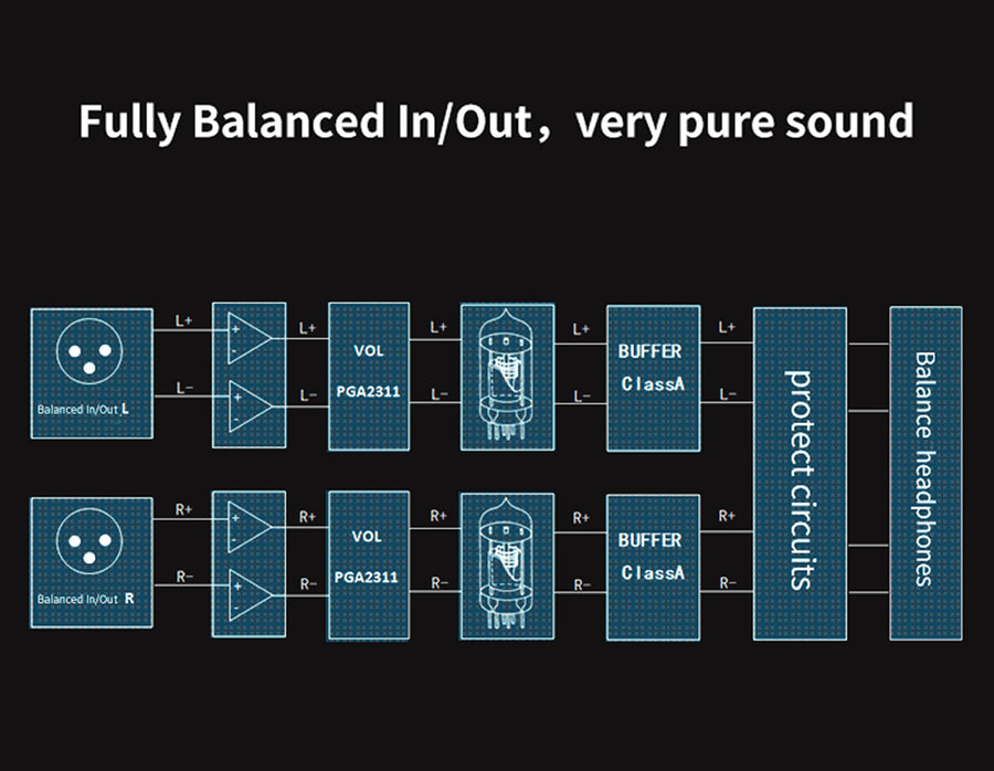 The TA20 Plus is a versatile desktop-balanced tube headphone amplifier with multiple inputs (RCA, XLR) and outputs (6.35mm unbalanced, 4.4mm balanced, 4-pin balanced). It uses a 5Z4P tube rectification and double 12AU7 tubes for amplification, delivering a sweet and refined sound. With strong output power up to 2000mW making it suitable to drive headphones with impedances ranging from 16 to 600Ω. and high-quality Japanese capacitors (ELNA SILMIC and NICHICON FW), it provides a transparent, warm, and detailed audio experience.