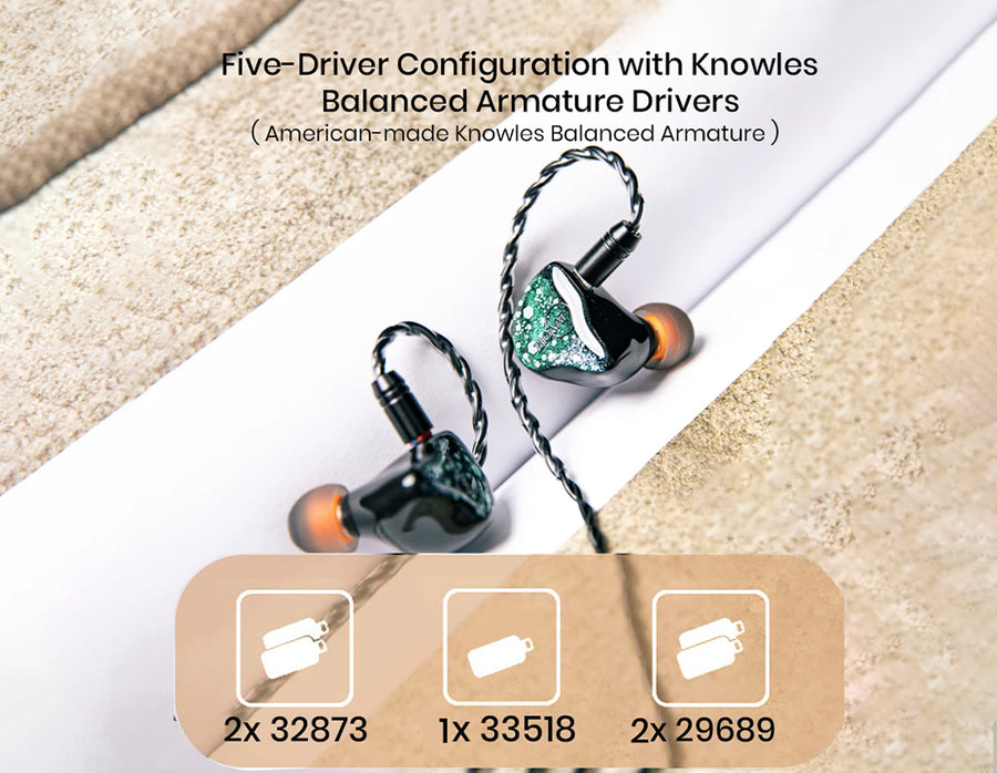 PRECISION-TUNED TREBLE WITH 5 KNOWLES DRIVERS