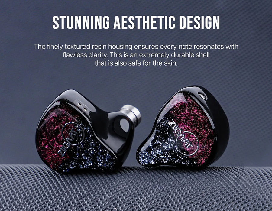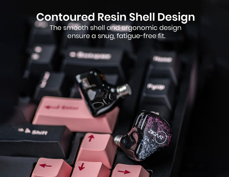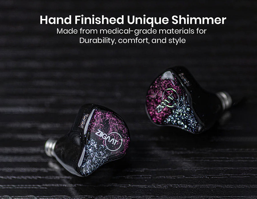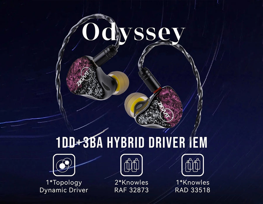 The ZiiGaat Odyssey blends cutting-edge hybrid in-ear monitor technology with stunning design and exceptional audio performance. Its 1DD + 3BA driver setup pairs a custom 10mm dynamic driver with three Knowles balanced armature drivers, delivering powerful bass, natural vocals, and crisp highs. Crafted from medical-grade resin, the glossy black shell features a red and silver glitter faceplate for a striking look, while its lightweight, ergonomic design ensures comfort during long listening sessions. The detachable 4-core OFC cable enhances compatibility with various audio sources, and with an 18Ω impedance, it’s easy to drive without amplification. The Odyssey offers a wide, immersive soundstage and precise imaging, making it a top choice for audiophiles and music lovers across genres.