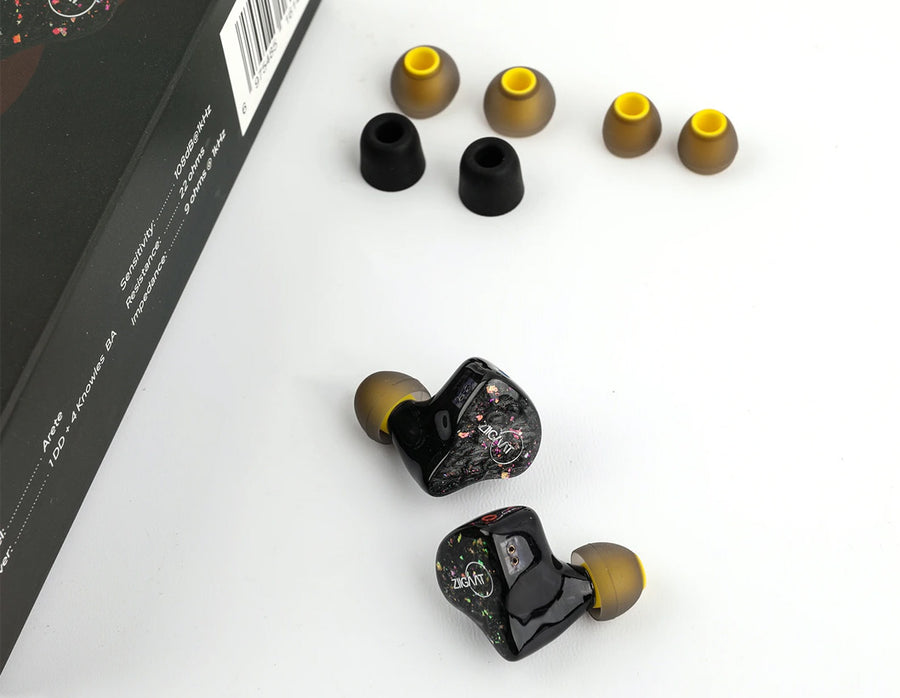 In collaboration with Fresh Reviews, ZiiGaat presents the Arete, a flagship in ear monitor featuring a 5-driver hybrid system (1 dynamic + 4 balanced armatures drivers). This includes a 10mm biocellulose dynamic driver for deep, clean bass and four Knowles balanced armatures- dual 29689 and 31736 drivers that deliver precise mids and sparkling highs. The Arete 3-way crossover ensures a well-balanced, professional-grade sound with neutral mids and refined highs, making it an exceptional choice for musicians and audiophiles seeking detailed, accurate audio performance.